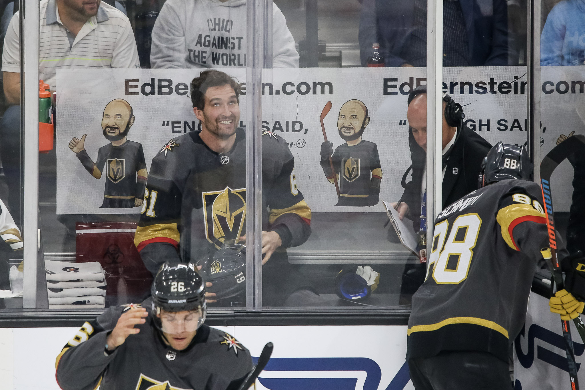 Indeed, there was a playoff game feel to the Thursday game, with the Knights jumping on Jets netminder Laurent Brossoit and running him off the ice after a 3-0 lead in period two. The Knights then added two more goals in period two, with linemates Reilly Smith and William Karlsson each notching their second goals of the game on Jets goalie Connor Hellebuyck. Here’s Smith postgame.