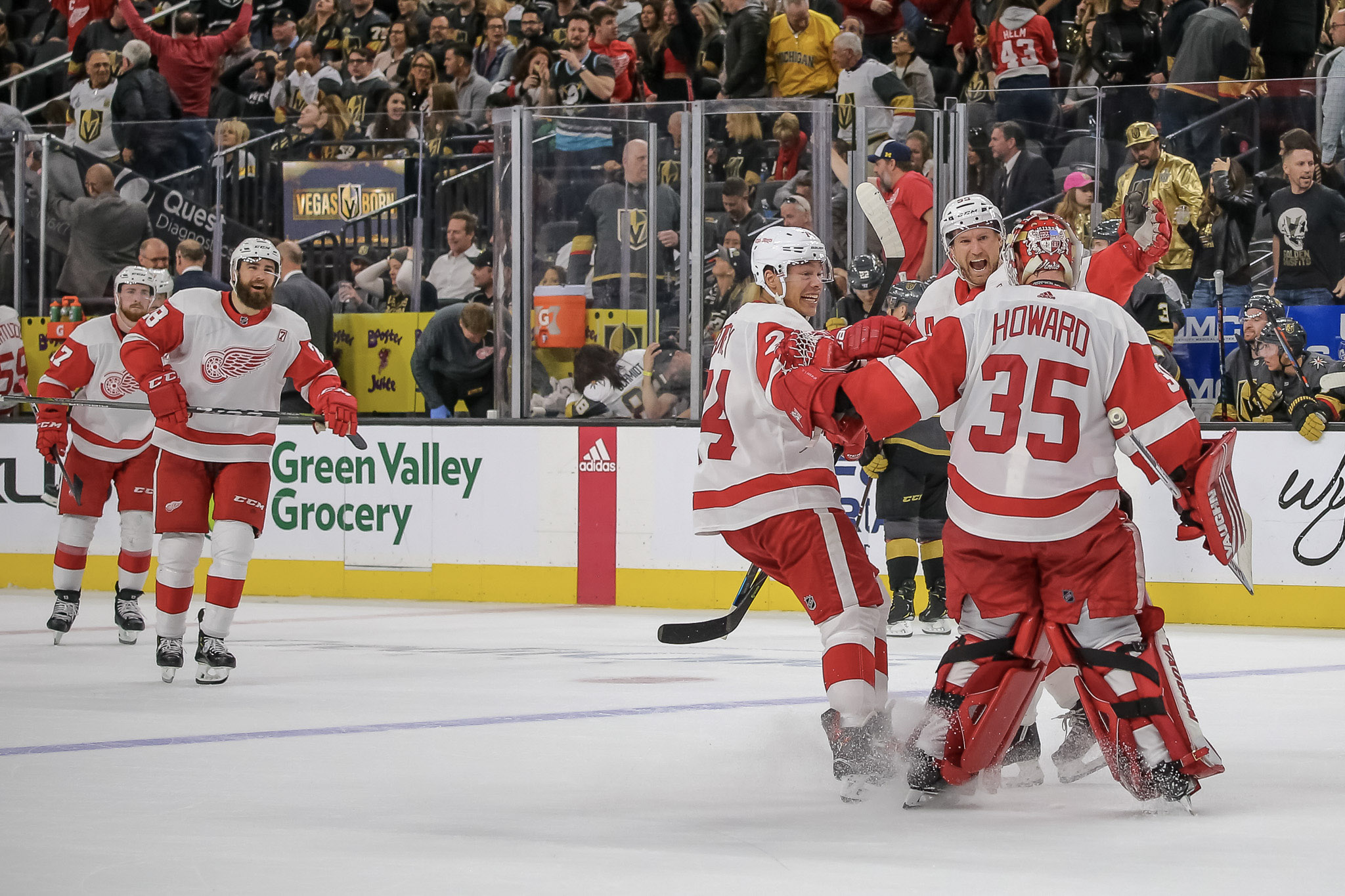 But then Detroit responded with the equalizer to knot the score at two in the third period — and then eventually won the game in OT, taking a 3-2 win from the Knights before a robust crowd of 18,437 fans at T-Mobile Arena.