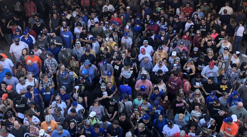 The Golden Knights’ first-year success inspired the Las Vegas 51s baseball team to have a have a Golden Knights-themed baseball jersey giveaway at the minor league team’s last baseball game at Cashman Field Sept. 1. It was a free jersey and there was a crush of fans looking for that giveaway.