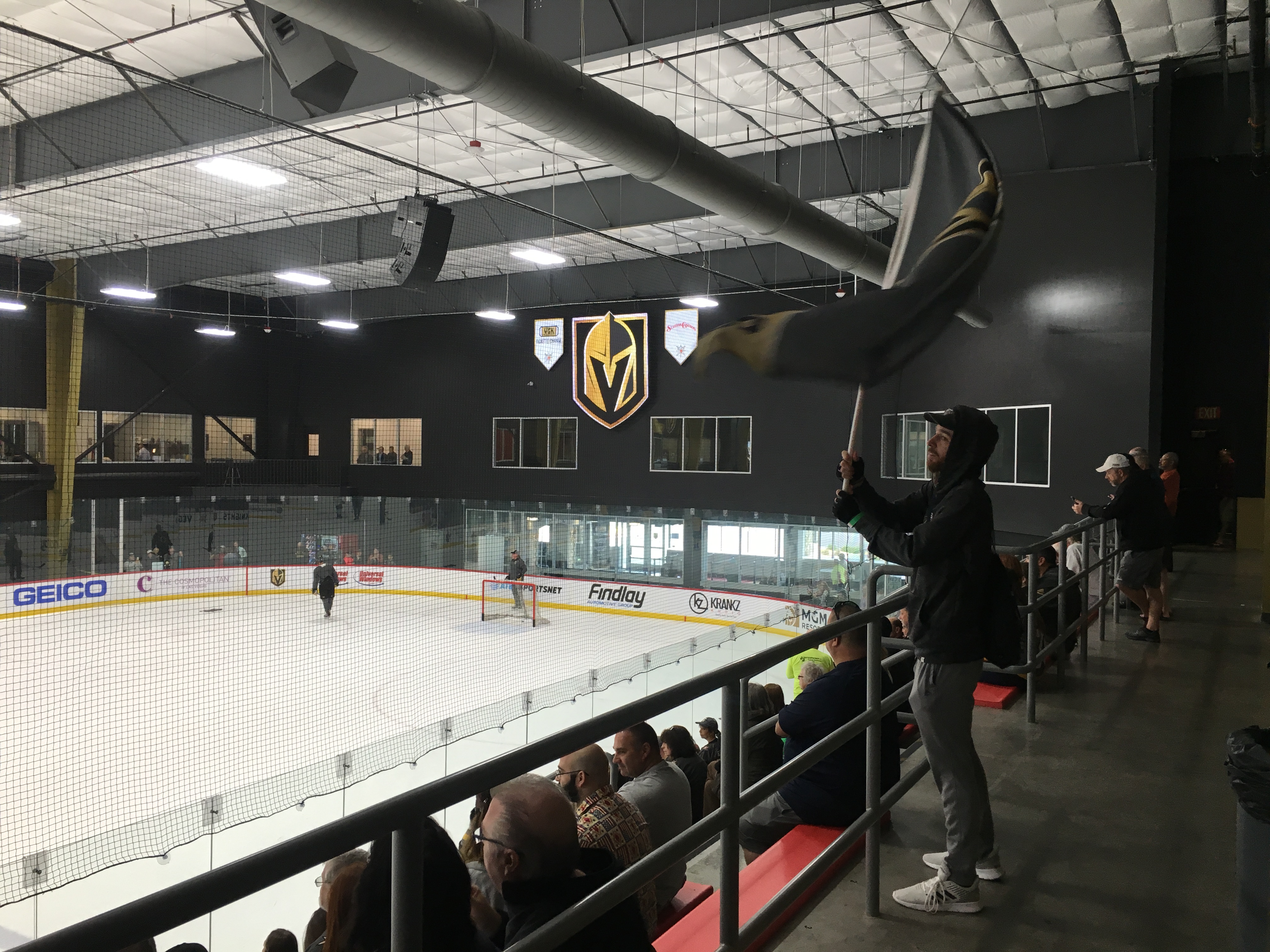 “It’s a weekday and people have to work and can’t take off work for practice. Tuesdays are tough,” said Flagman Helfst, who was waving the Golden Knights flag during the practice. “Fortunately, I work online and can set my schedule around the Vegas Golden Knights.”