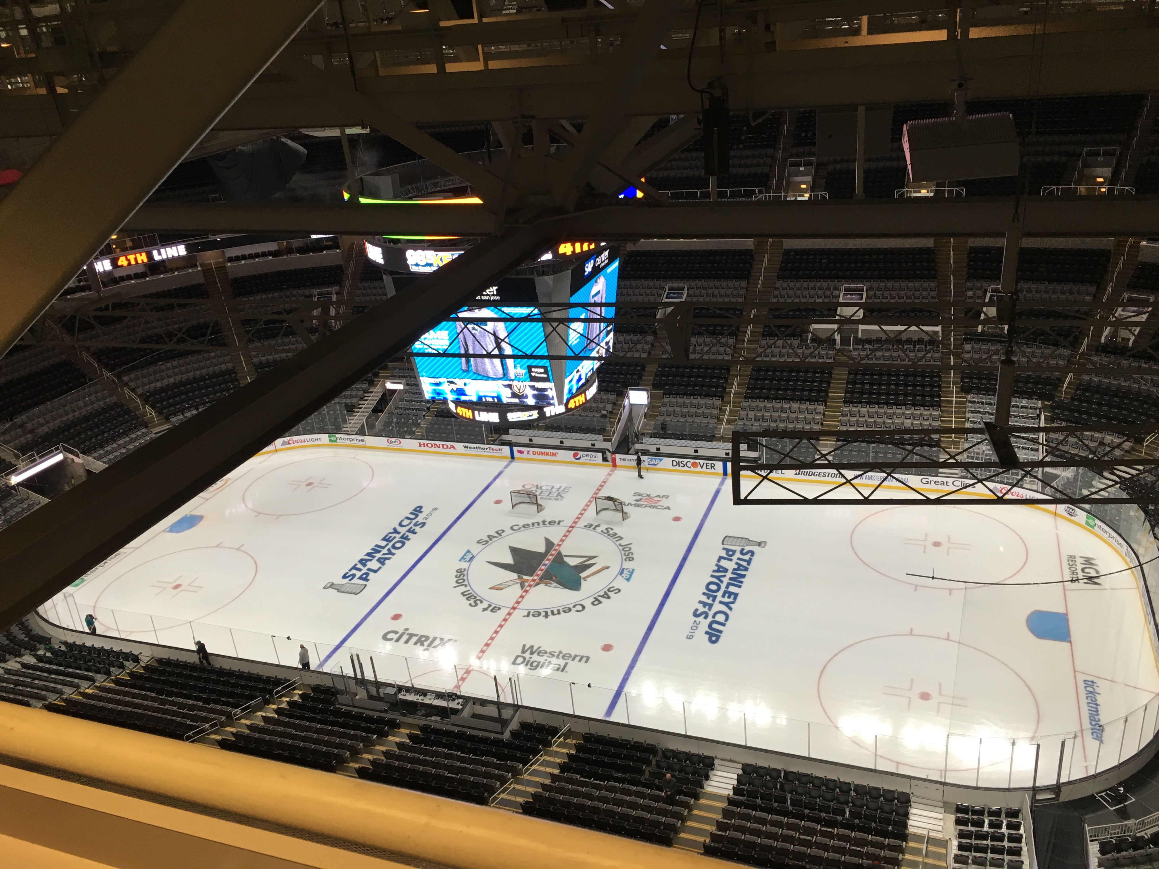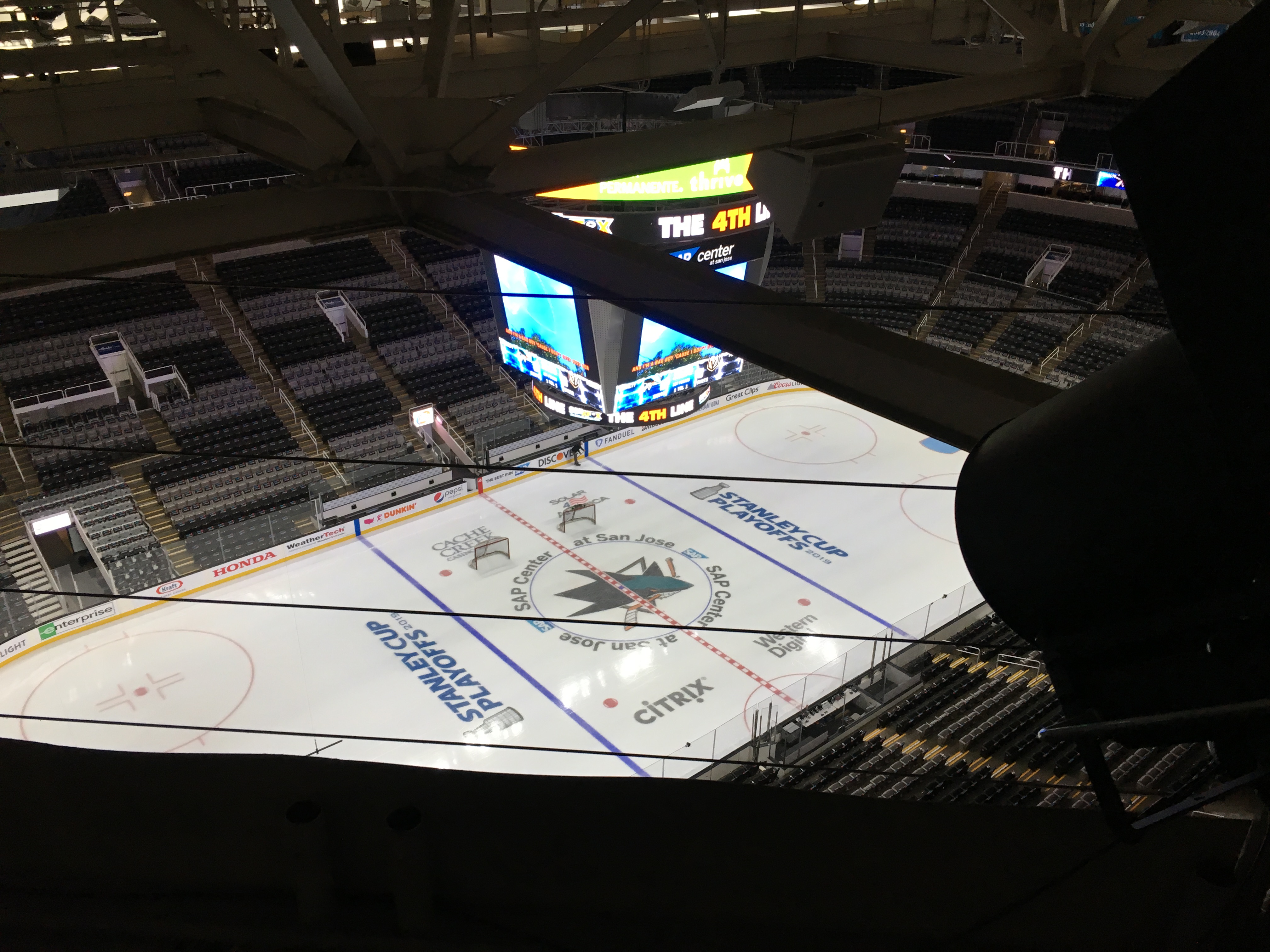 And in the past, some hockey international radio broadcasts literally originated from the catwalks when the Sharks played in the Stanley Cup Finals three years ago. A tech showed me those radio crew spots. Pity the radio broadcaster with a fear of heights.