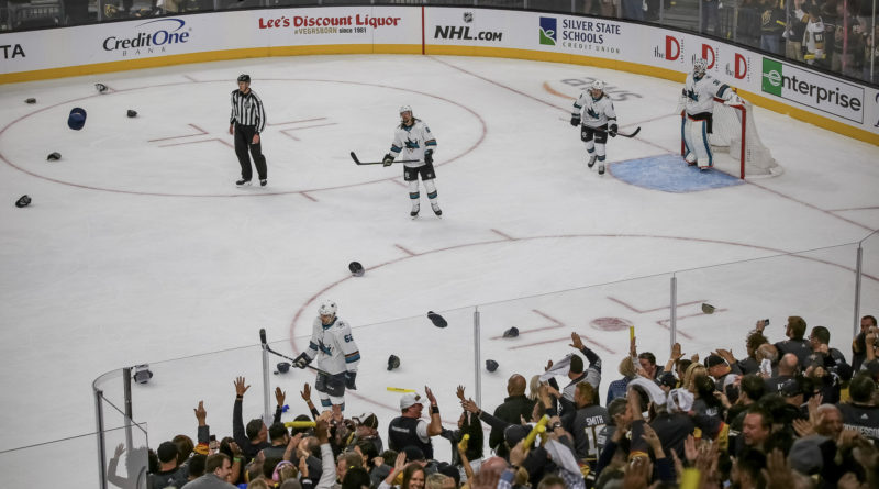 So when Golden Knights forward Mark Stone faked out San Jose Sharks goalie Martin Jones and slid his third goal of the playoff game into the net during the VGK’s 6-3 win in Game 3 Sunday night, not only did several hundred billed hats come flying down on the ice, it also gave some publicity to the hat supplier brand, ’47. The Knights’ partnership has ’47 as the presenting sponsor of the hat trick.