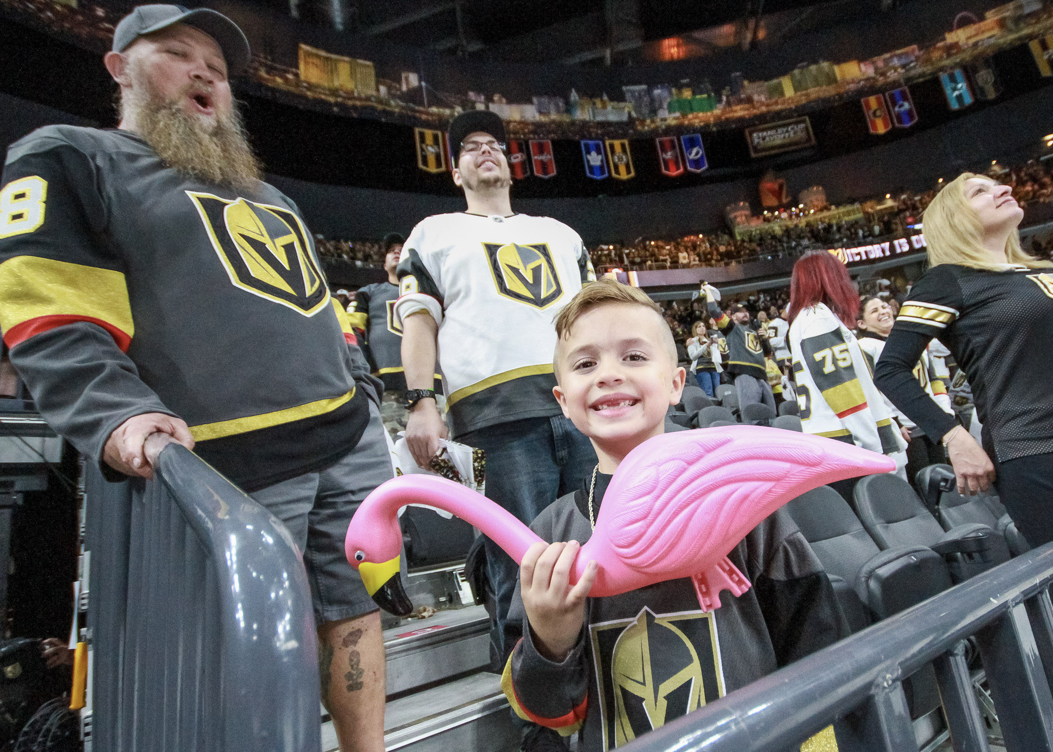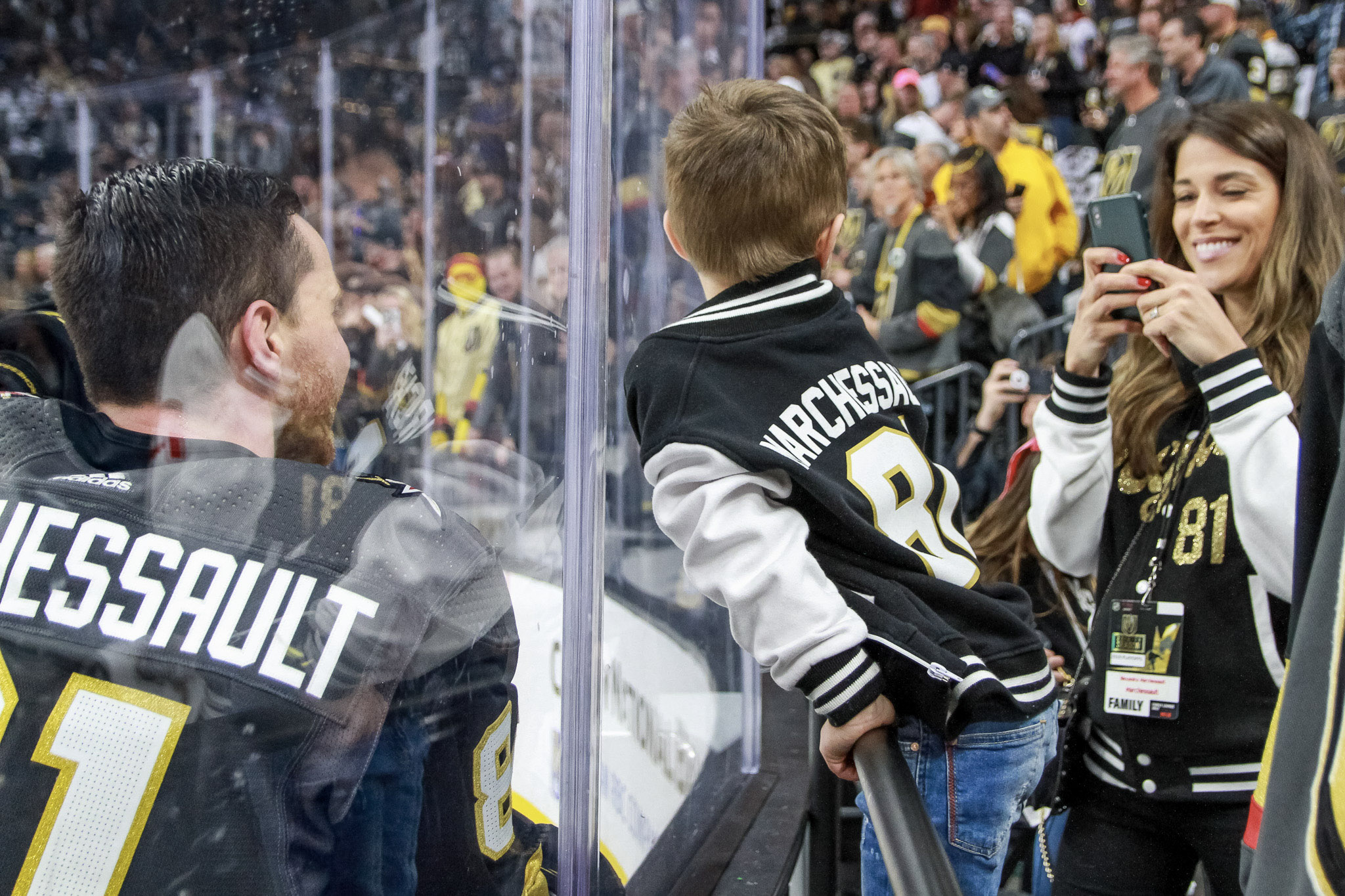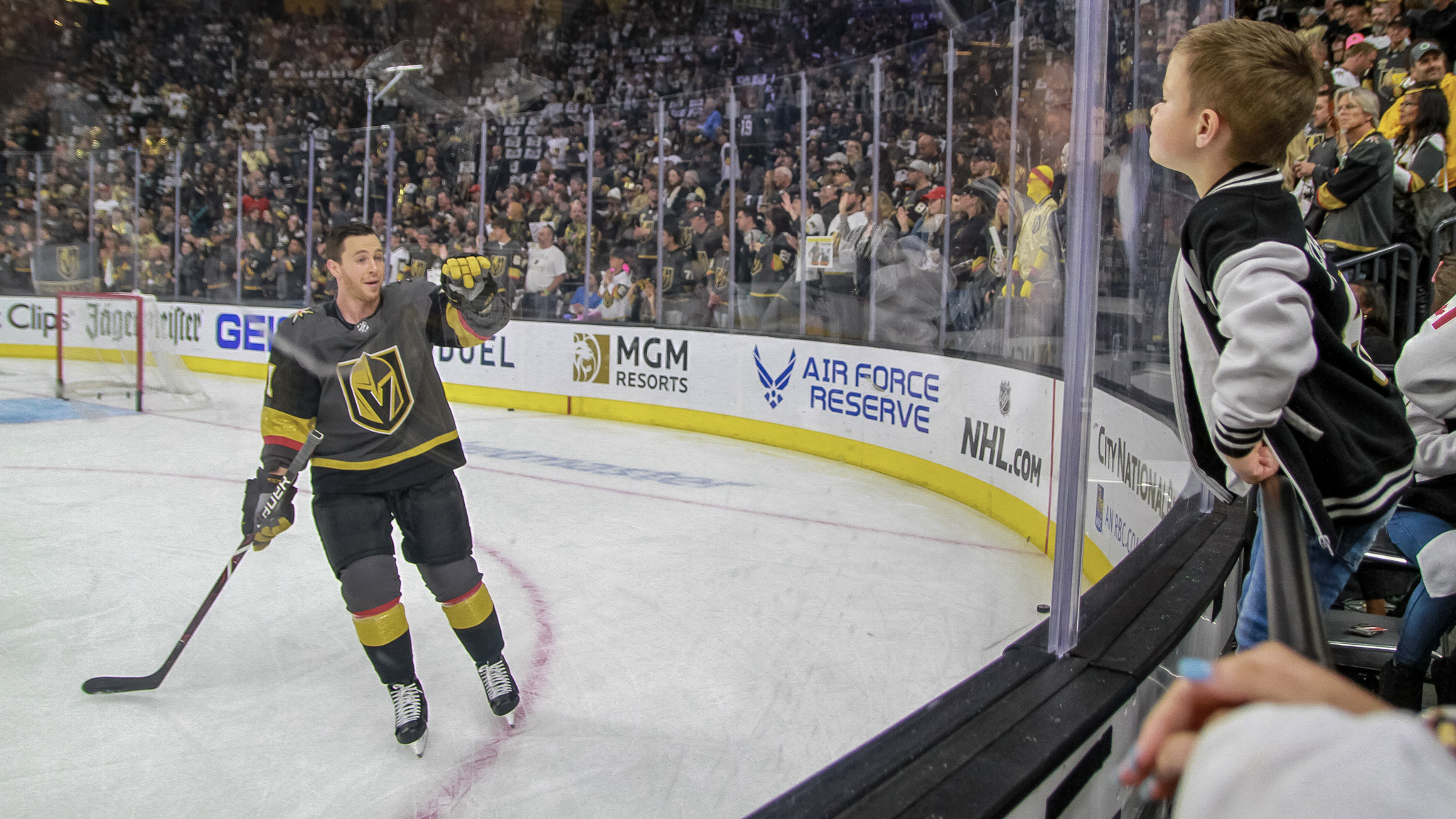 The home ice crowd was another giant gathering of VGK fans. LVSportsBiz photographer J. Tyge O’Donnell captured some of the fan images at Game 4, including some fun photos of forward Jonathan Marchessault warming up and seeing his kids in the stands.