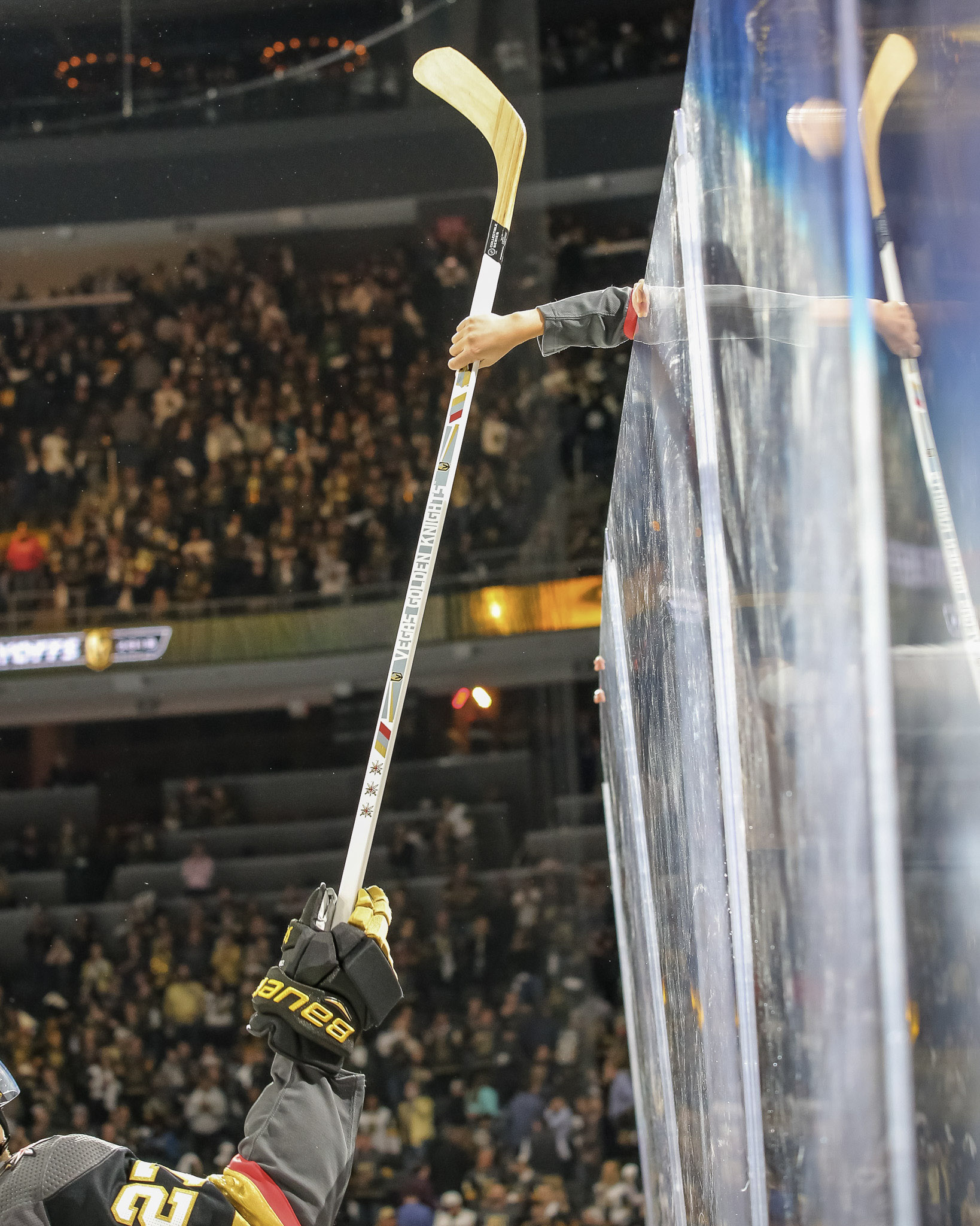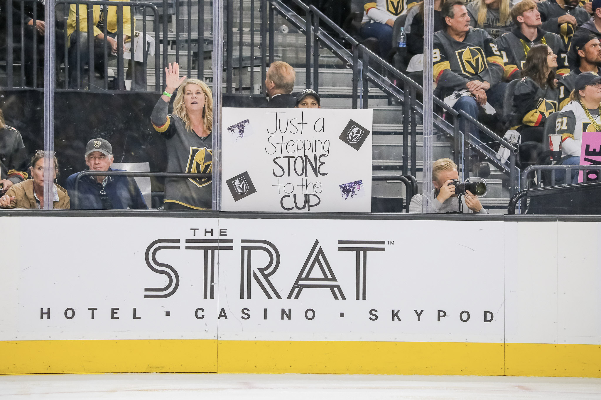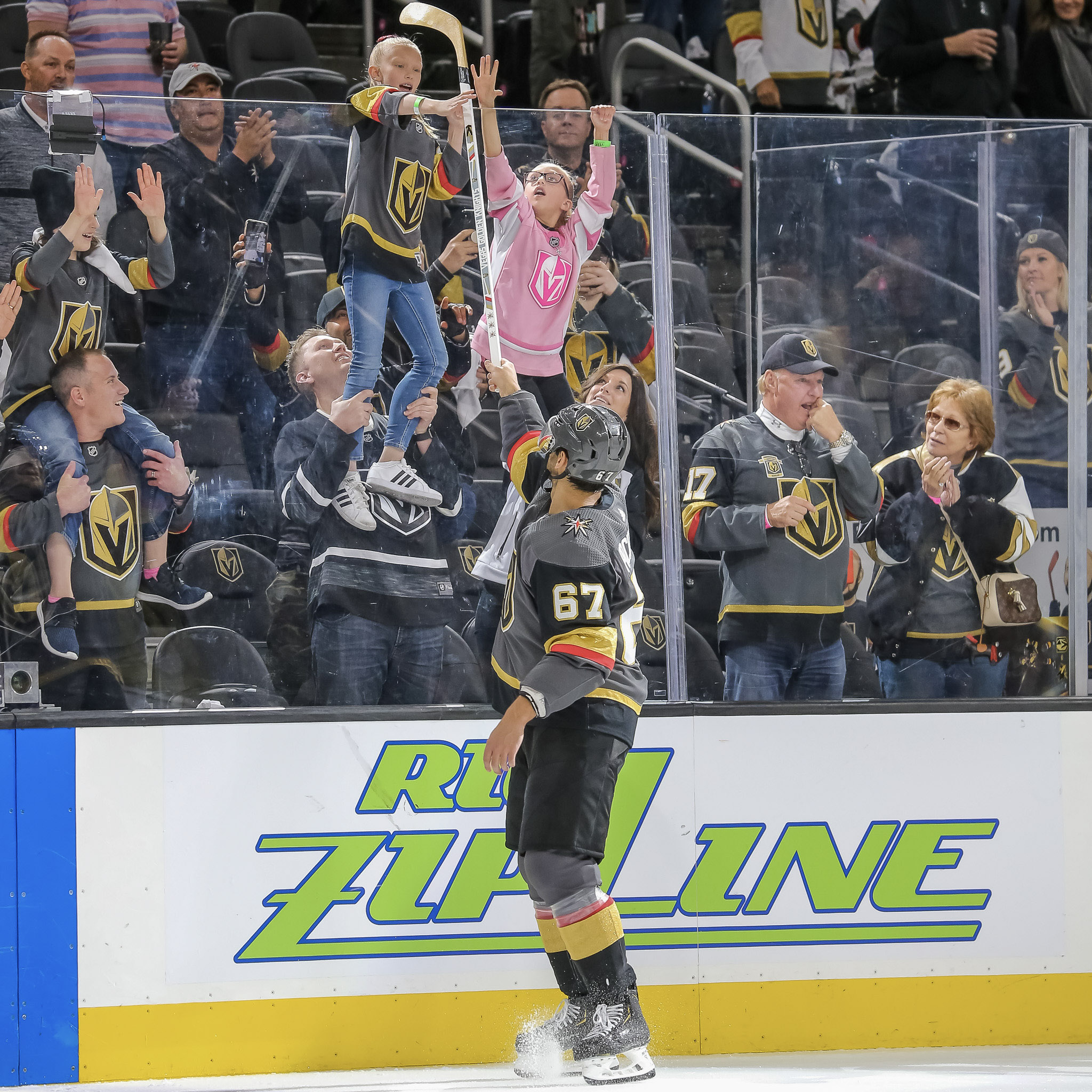 The home ice crowd was another giant gathering of VGK fans. LVSportsBiz photographer J. Tyge O’Donnell captured some of the fan images at Game 4, including some fun photos of forward Jonathan Marchessault warming up and seeing his kids in the stands.