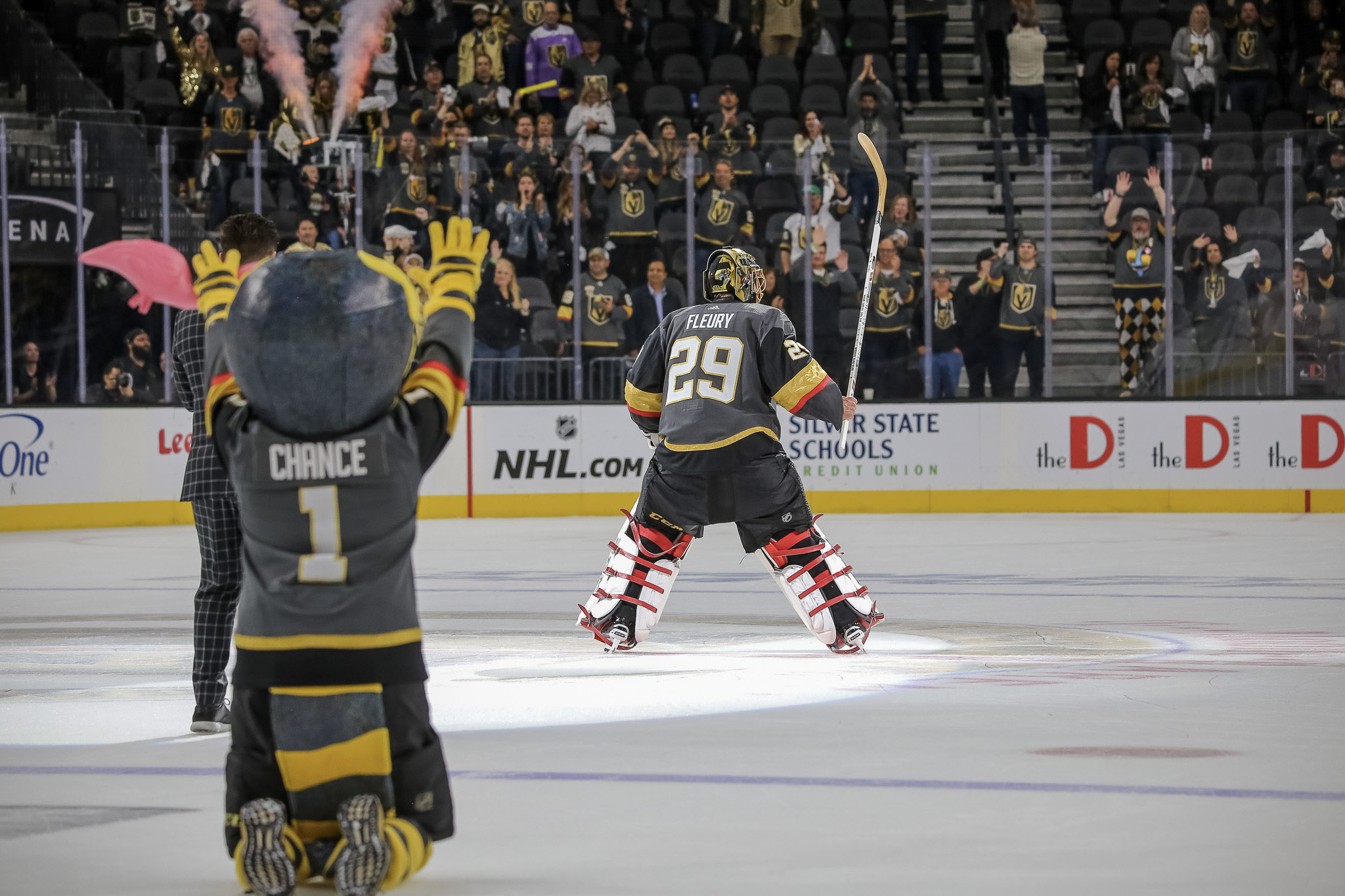 VGK forward Max Pacioretty scored two goals and Shea Theodore added a highlight-reel puck-handling goal with 47 seconds left in period one. Fleury added the shutout, delivering free dozen Krispy Kreme doughnuts to each fan who was in the Big Ice House on the Strip.