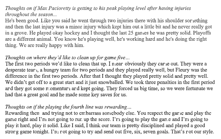 And let’s move to VGK defenseman Nate Schmidt talking about the Max Pacioretty-Paul Statsny-Mark Stone line that is dominating the Sharks in the first round.