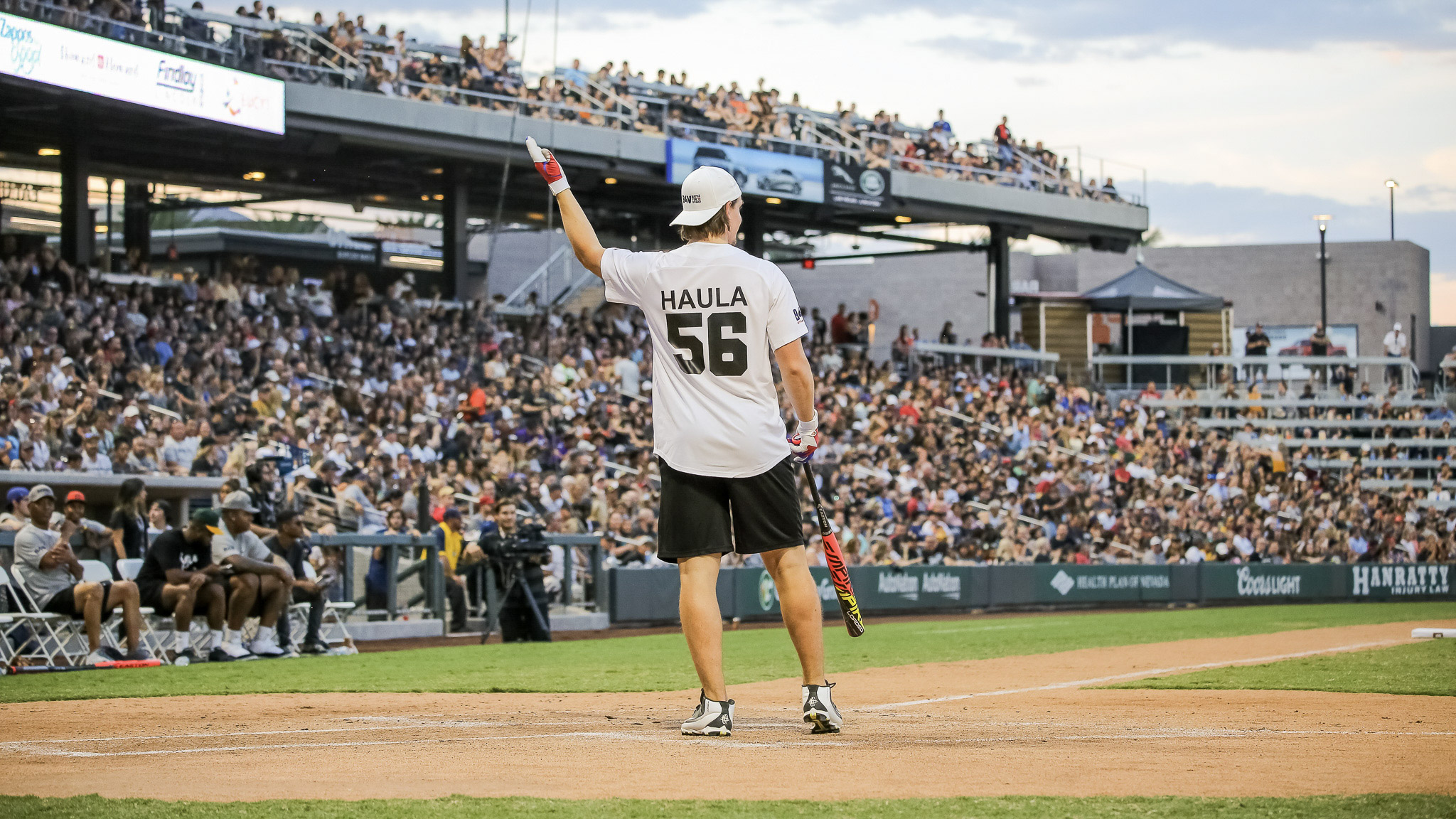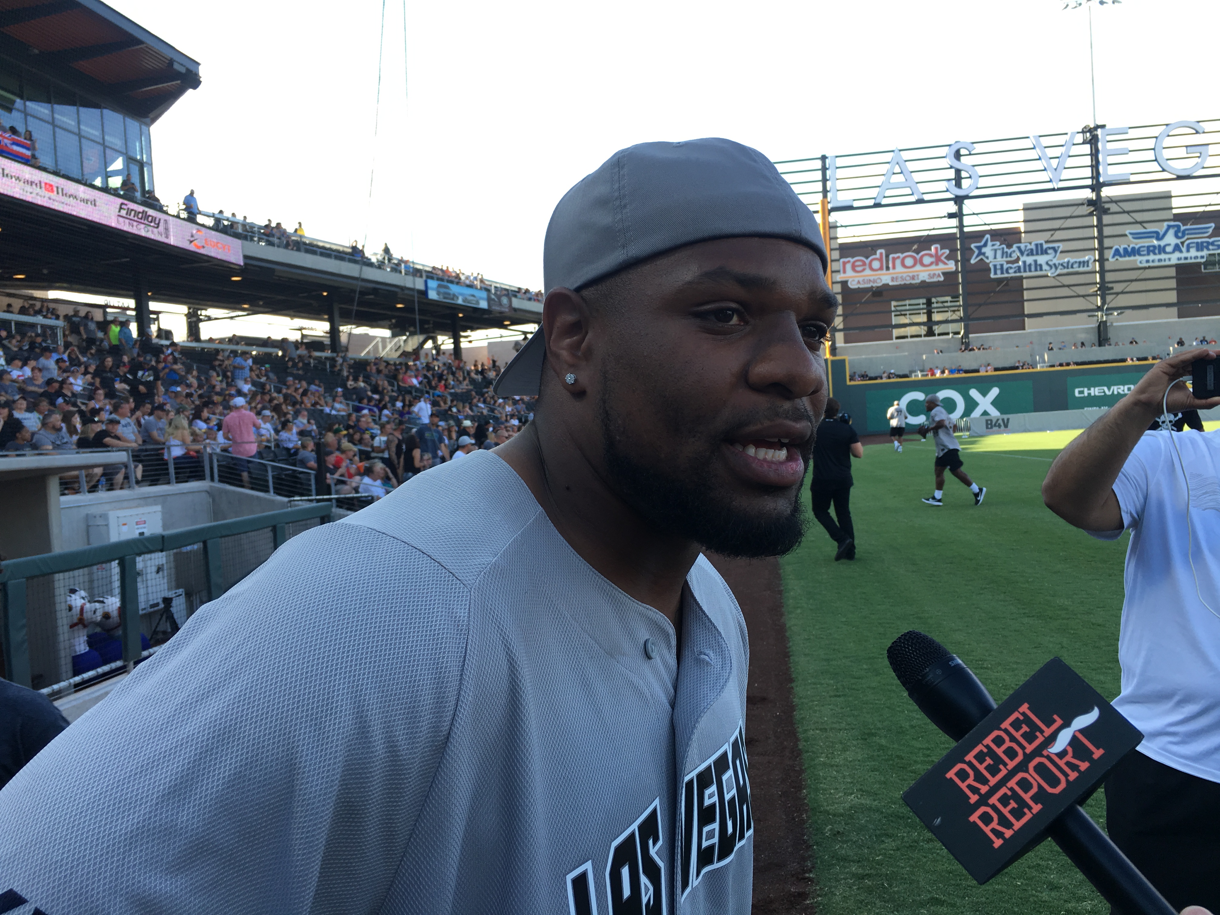 But there was a certain surreal feel to the softball match Saturday, where mostly players from the Vegas Golden Knights were playing mostly players of the Oakland Raiders football team on a $150 million brand-new ballfield normally used by the Las Vegas Aviators Triple A baseball club. The ballpark in Summerlin was packed and it was a sellout.