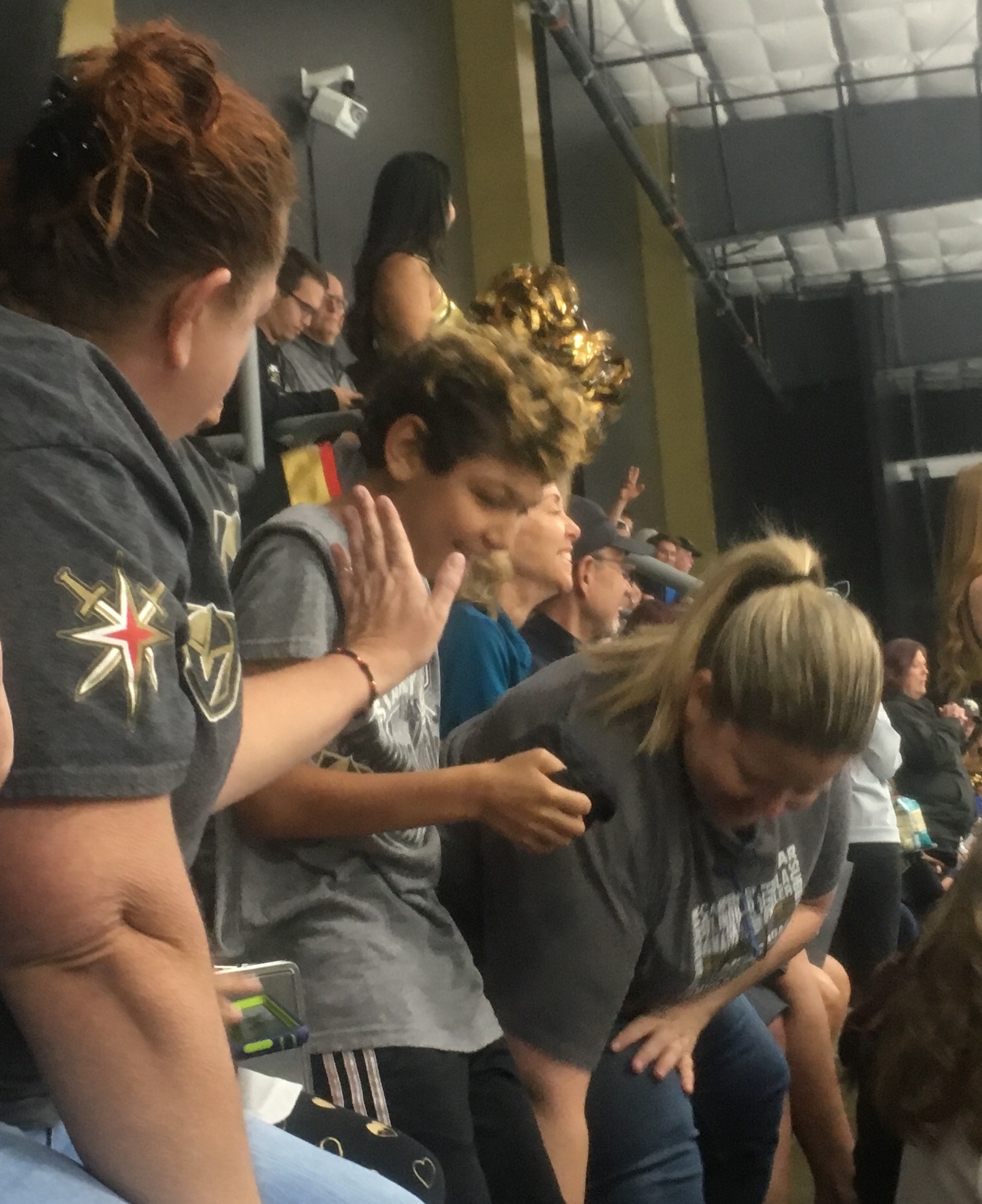The Golden Knights cheerleaders were in the aisles during scrimmage breaks as familiar VGK game music tracks filled the stands and rolled-up T-shirts were tossed to fans.