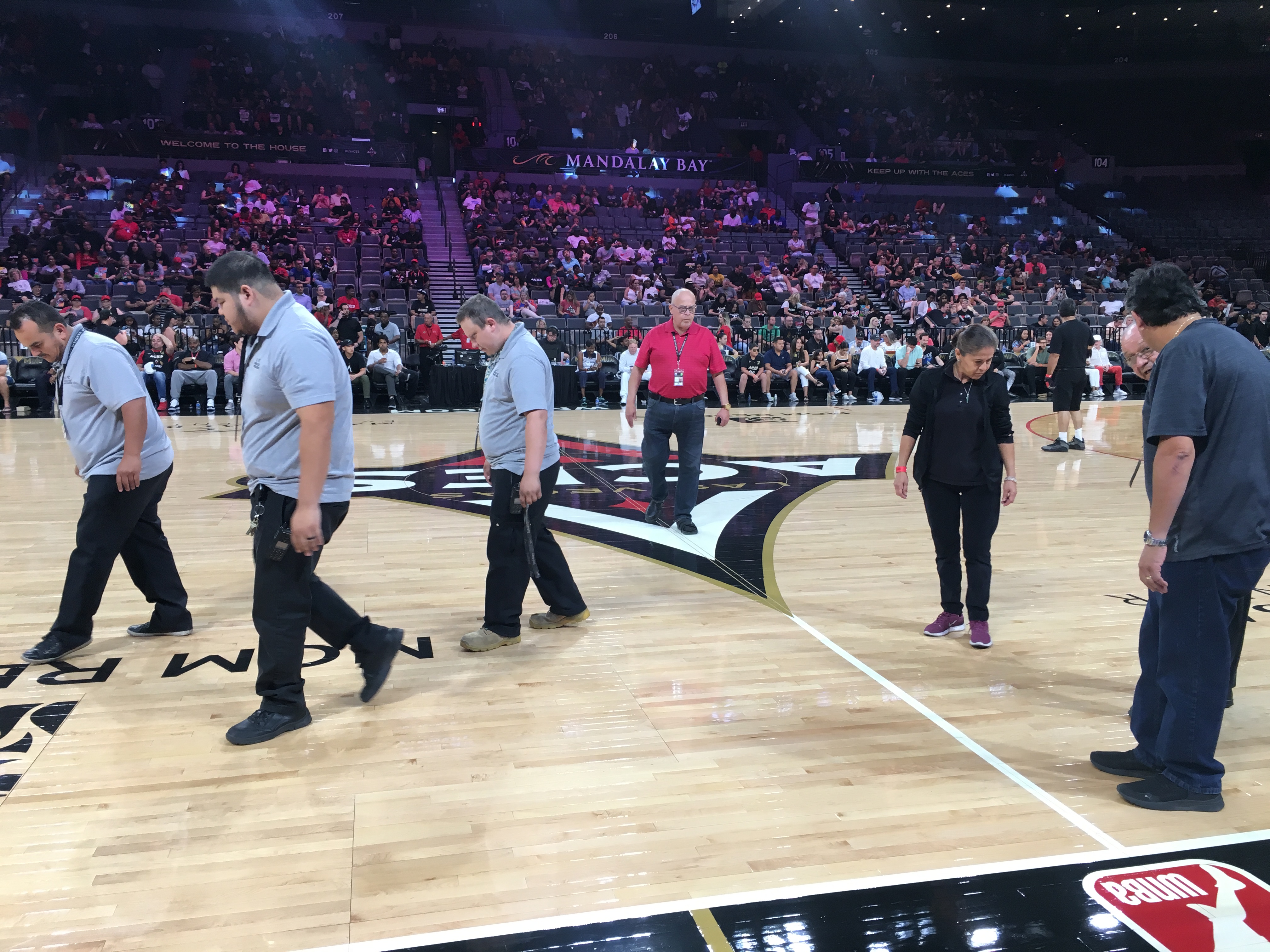 About a mile away west at the Mandalay Bay Events Center on the Strip, the Las Vegas Aces also postponed their game against the Washington Mystics with the Mystics leading 51-36 at the half. There were also concerns about the hanging scoreboard at Mandalay Bay Events Center and crews will check it out before the 10,000-seat arena is used for another event. That scoreboard is also relatively new, a little more than a year old when Aces owner MGM Resorts International installed the new center-hung scoreboard as part of a $10 million remodeling of the Mandalay Bay Events Center, the Aces’ home court.