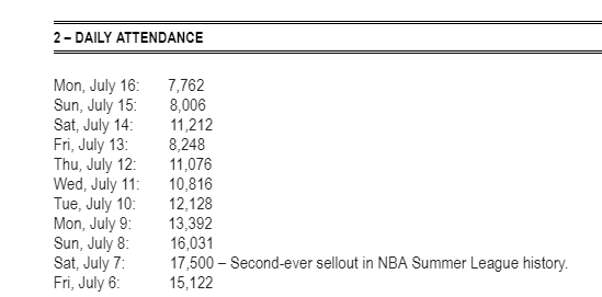 If the Summer League averages 10,363 in attendance a day these four final days it will set an attendance record.