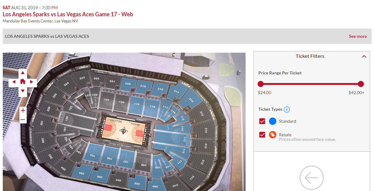 As for the Aces, which have clinched a playoff spot in the 12-team WNBA, they play their final home Aug. 31. A check of that game’s ticket prices show the costs range from $24-$42.