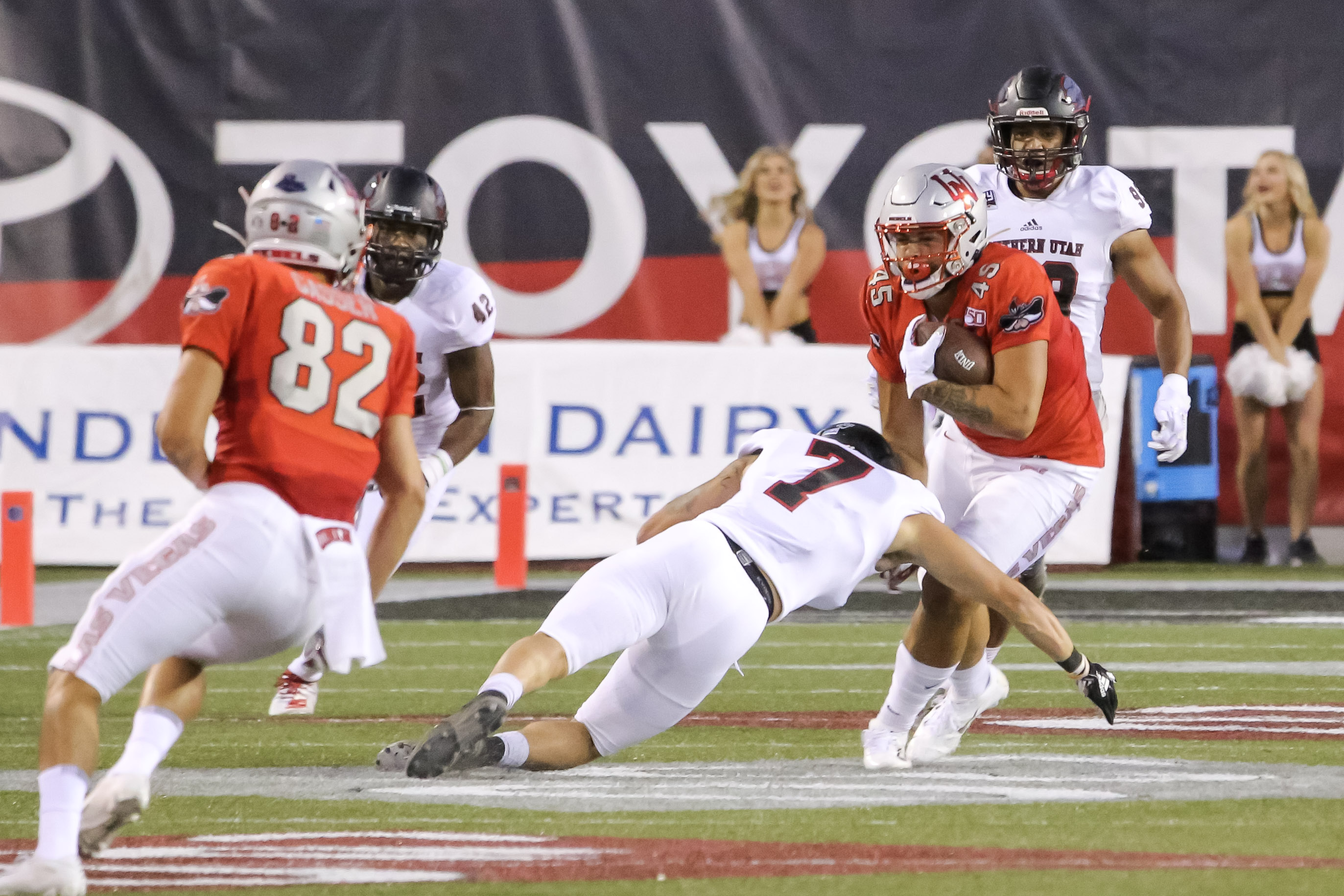 UNLV cruised to the lopsided win as running back Charles Williams ran for 143 yards and three touchdowns, while quarterback Armani Rogers ran for 114 yards and two TDs while also tossing a touchdown.