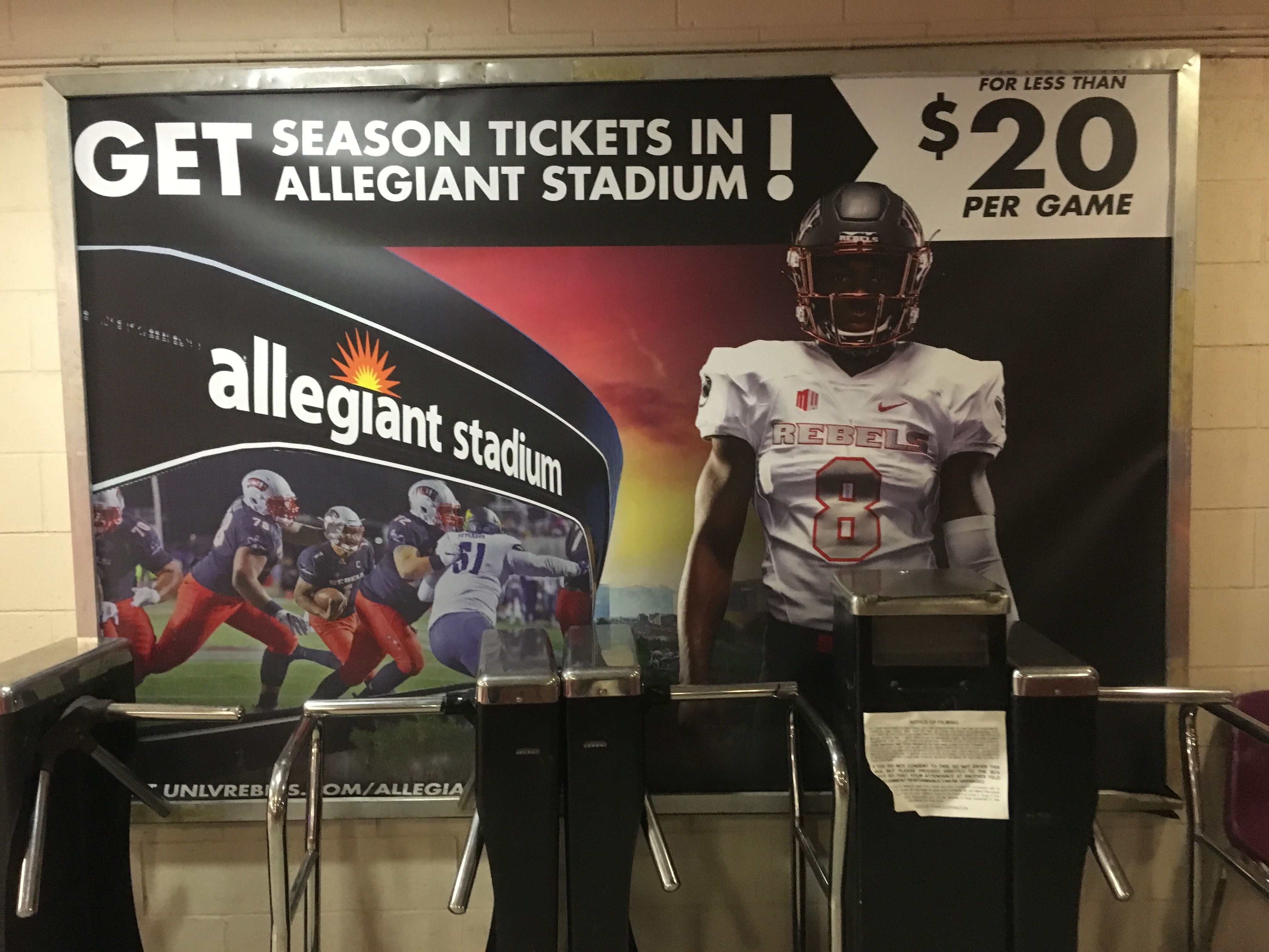 The Rebs move to the Raiders’ new Allegiant Stadium next season and there were promotional signs and scoreboard messages inside Sam Boyd Stadium urging fans to buy 2020 season ticket plans that cost as less than $20 a game.