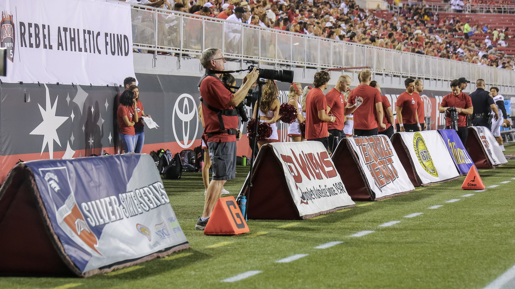 Dolby explained UNLV cannot bring in a sponsor to the Raiders stadium that would compete with a Raiders’ sponsor in that same category. For example, the Raiders have Caesars Entertainment as a founding sponsor at the stadium, while UNLV football has Boyd Gaming and South Point hotel-casino as sponsors.