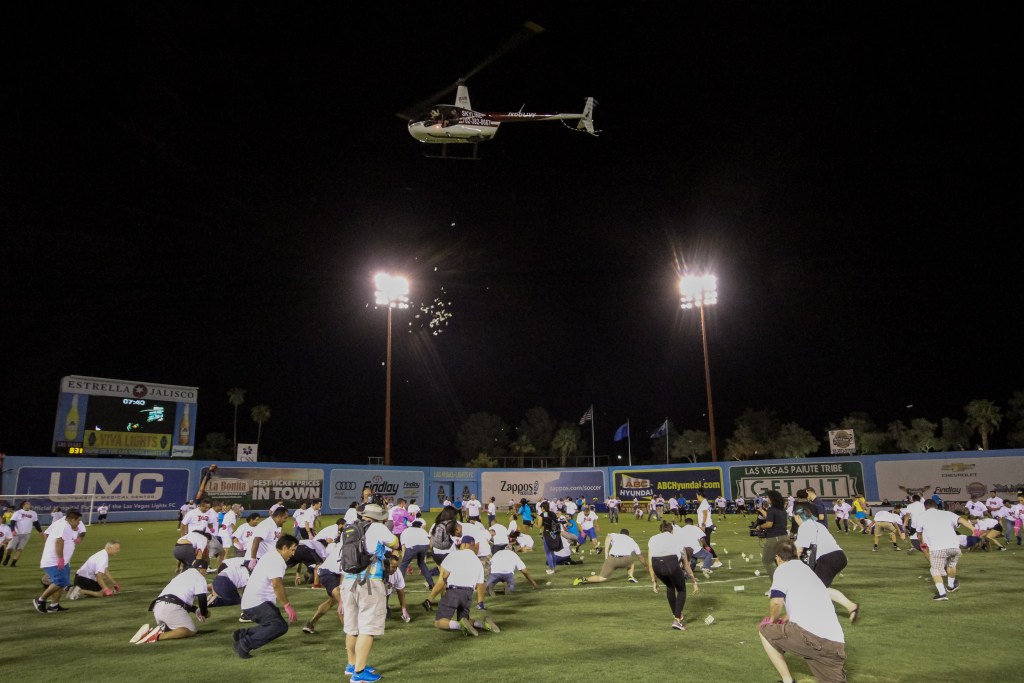 But then again, the Las Vegas Lights soccer team enjoys pushing the envelope on its fan promotions. The Lights’ biggest promotion this season was Sept. 7 when the United Soccer League team hired Skyline Helicopter Tours to drop $10,000 in cash at halftime of a game at Cashman Field in downtown Las Vegas.