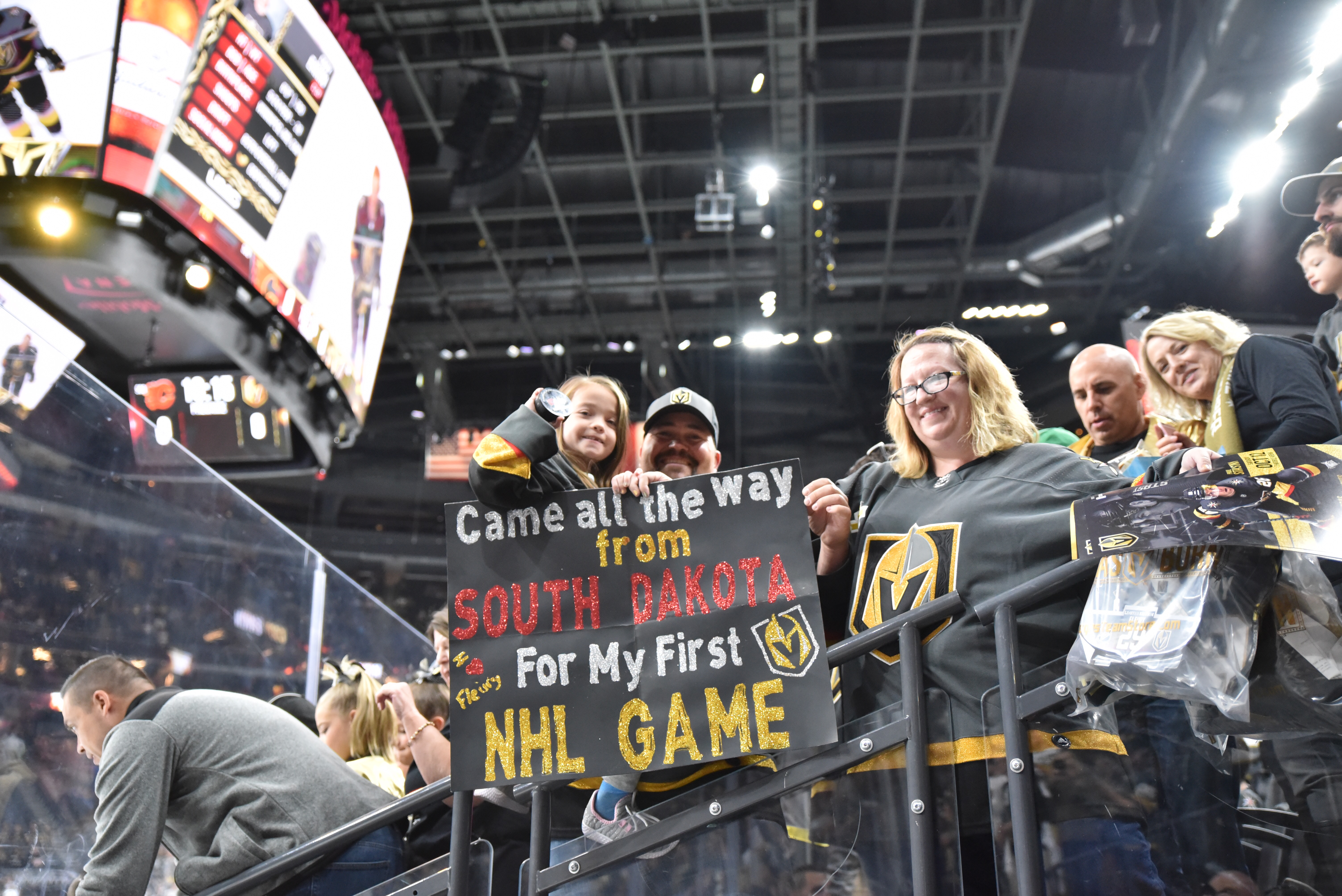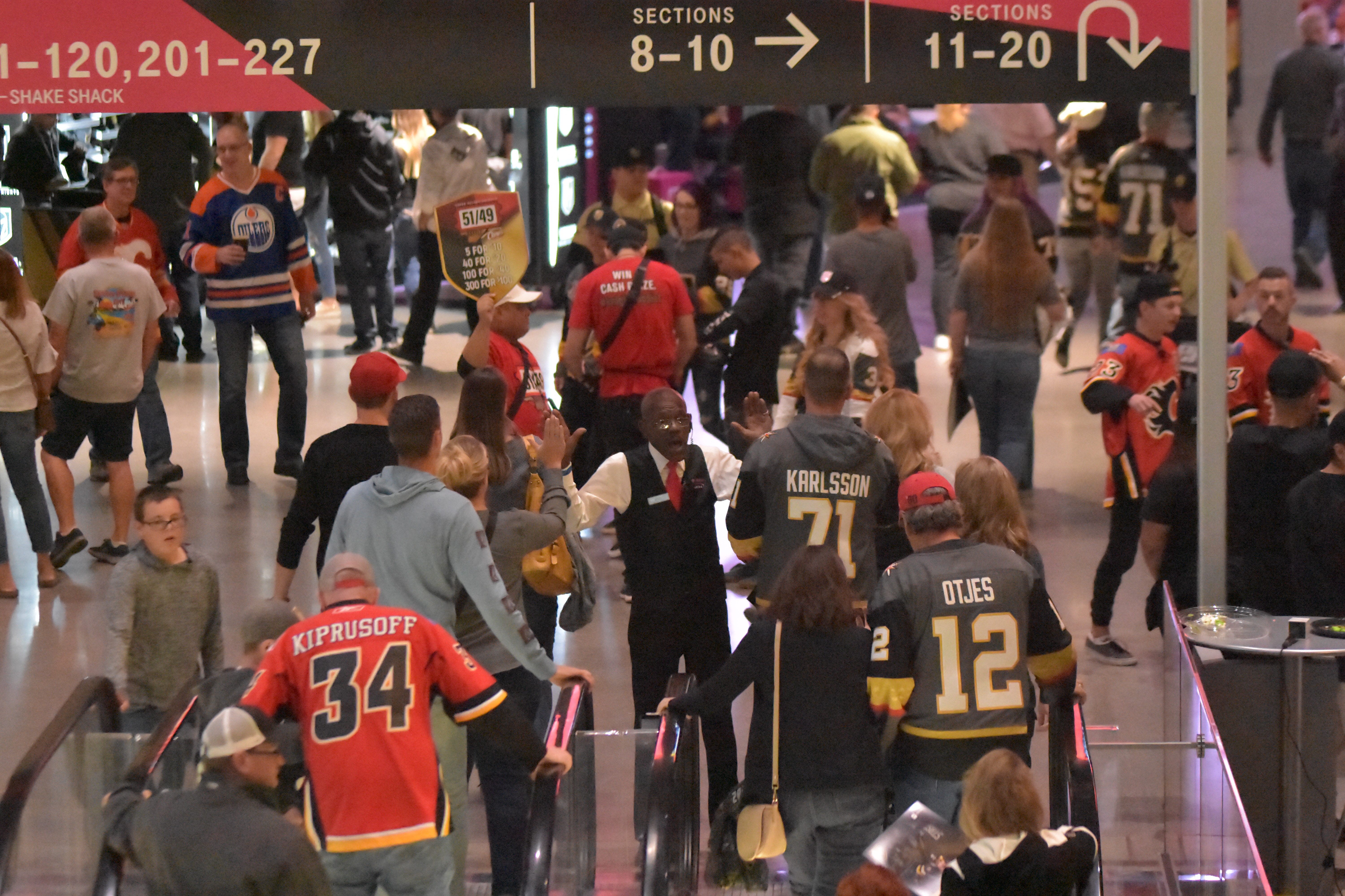 It’s 5:45 p.m. and the Golden Knights fans are flooding into the T-Mobile Arena lobby.