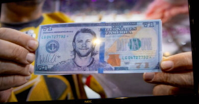 Schmidt knows all about car endorsements because he picked up a side job as a pitchman for Henderson Hyundai. In a TV spot, he’s wearing a Golden Knights jersey with his 88 number, but the Golden Knights logo is not on the front of the hockey sweater.