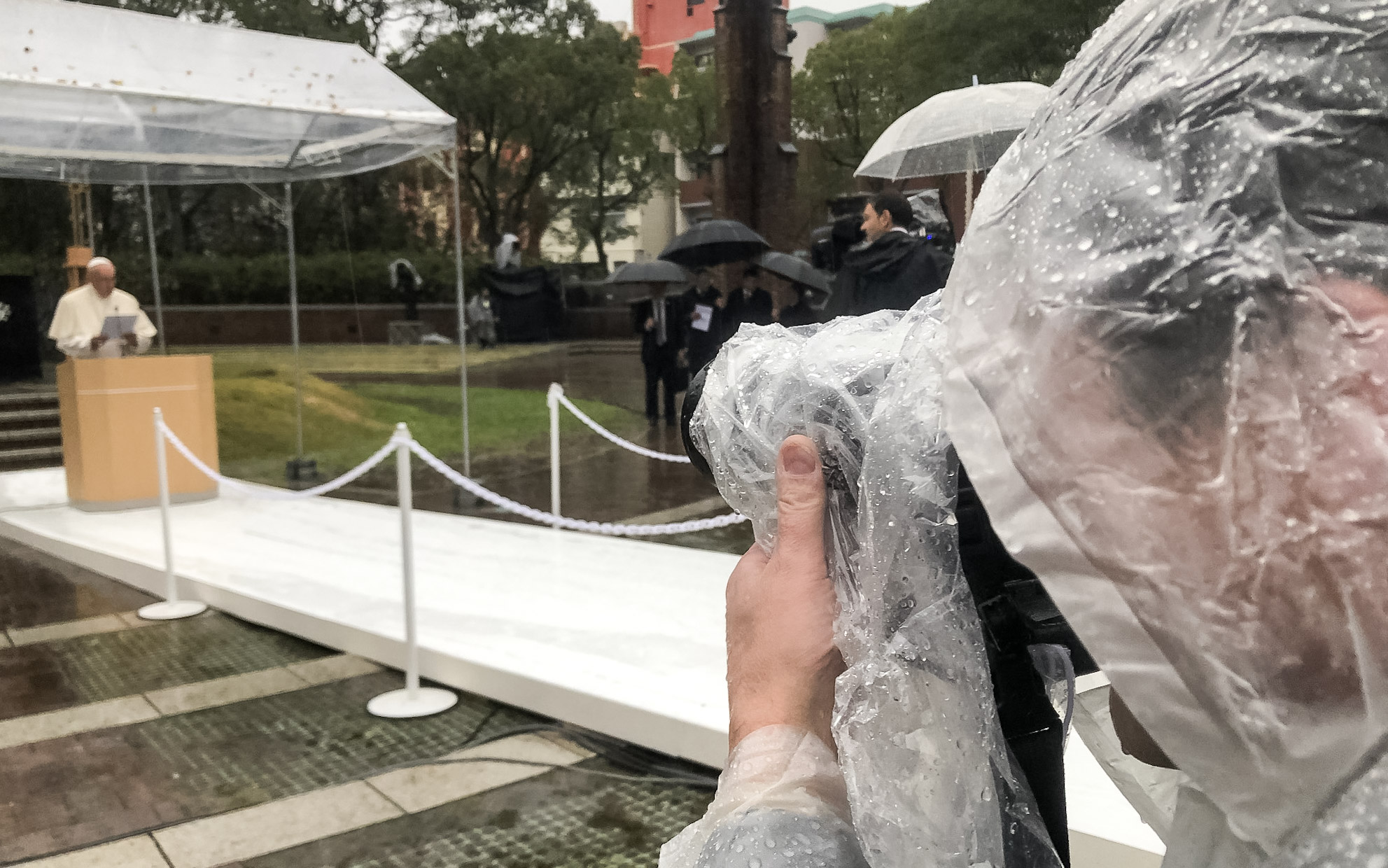 O’Donnell, who works as a full-time Caesars hotel bellman when not doing photography for LVSportsBiz.com, met Pope Francis at the Nagasaki Ground Zero Peace Park in Japan Sunday. The Pope decided to visit Hiroshima and Nagasaki after two Japanese student peace messengers visited the Vatican this past summer and invited the Pope to visit Japan. It’s the first visit to Japan by a Pope in 38 years.