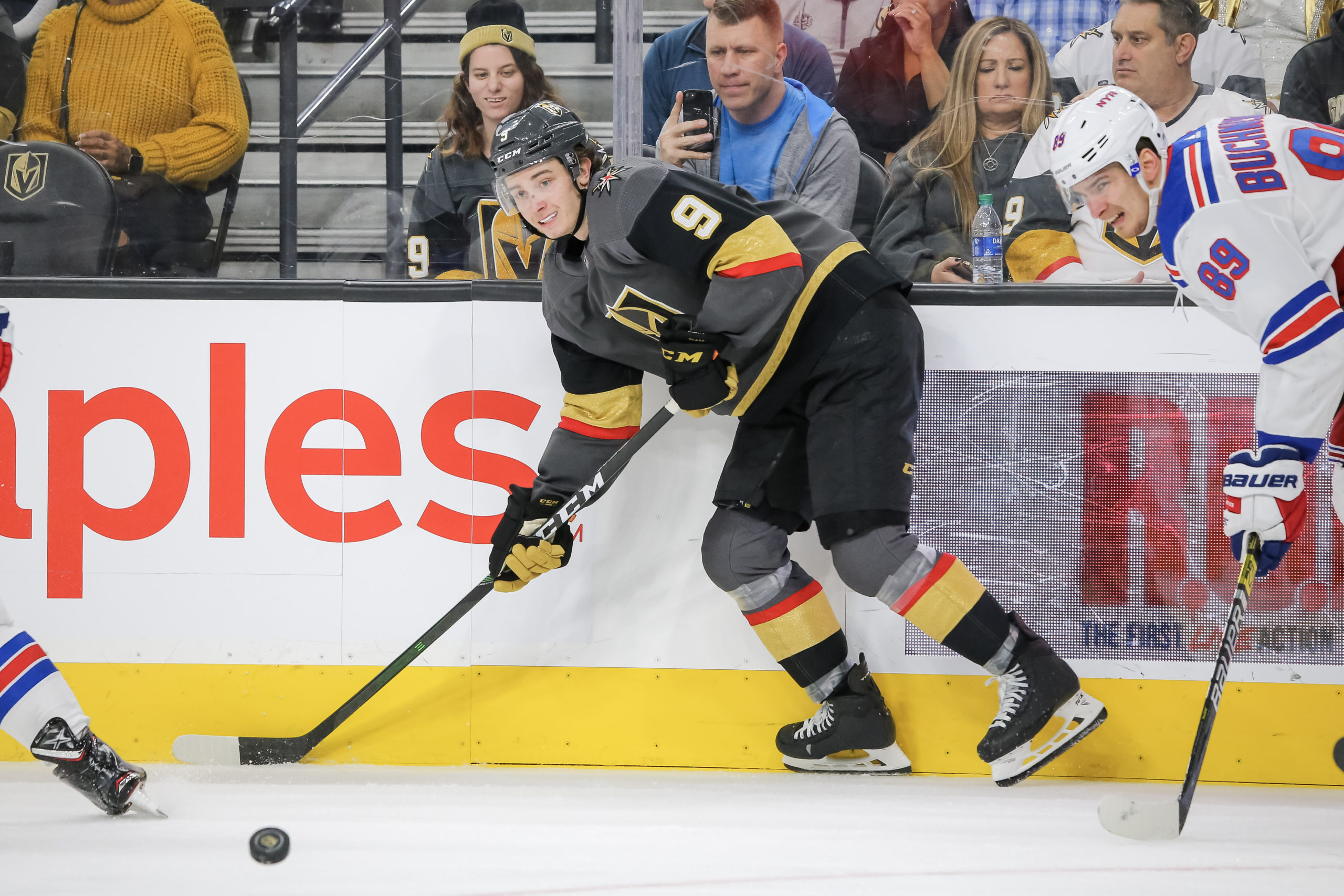 There might have been 18,236 announced for attendance, but there was a healthy number of Blueshirts backers in T-Mobile Arena at the start of the 4 p.m. game. With 4:55 left in the game, a pass from a Rangers player deflected off a Golden Knights skate and the game mercifully ended for the Knights. Marc-Andre Fleury is back, but Malcolm Subban was in goal for the Knights.