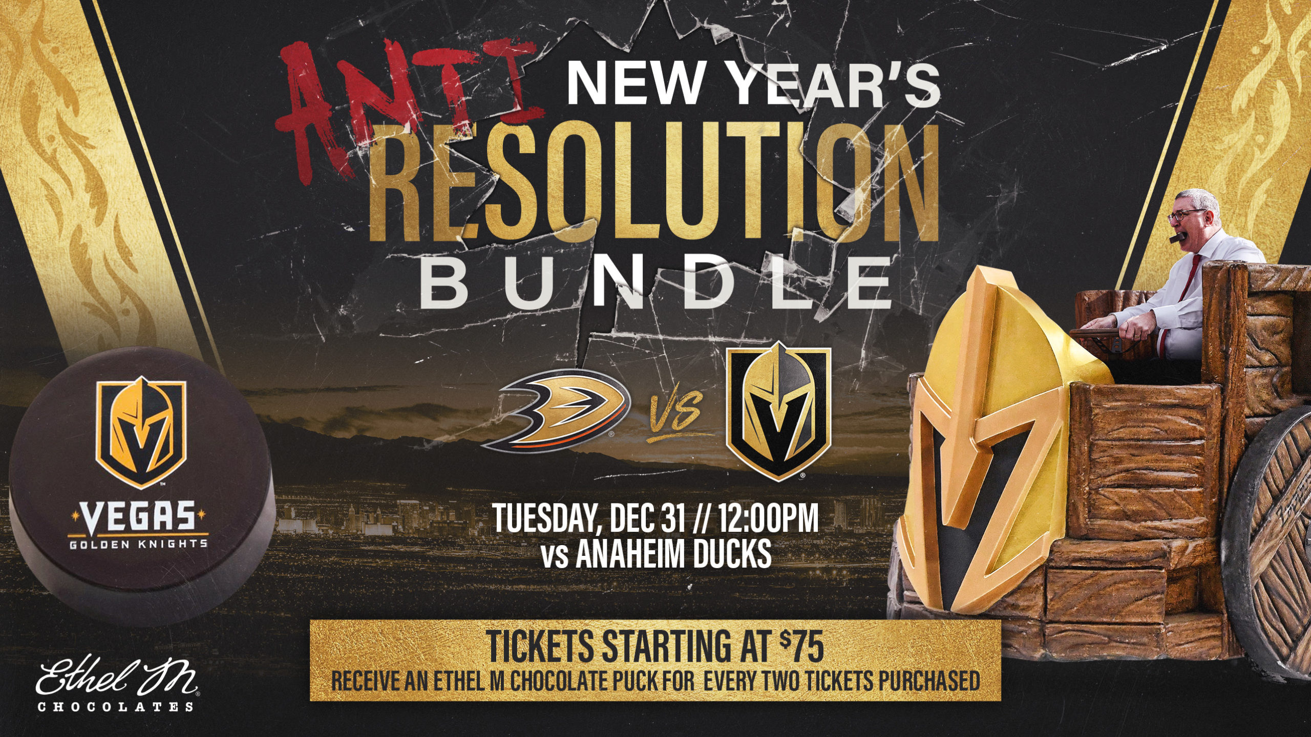 Ethel M Chocolate is even part of the New Year’s Eve ticket deal as fans get a free chocolate puck for every two tickets they buy under the promotion. Ethel M Chocolate in Henderson is one of the team’s many sponsors.