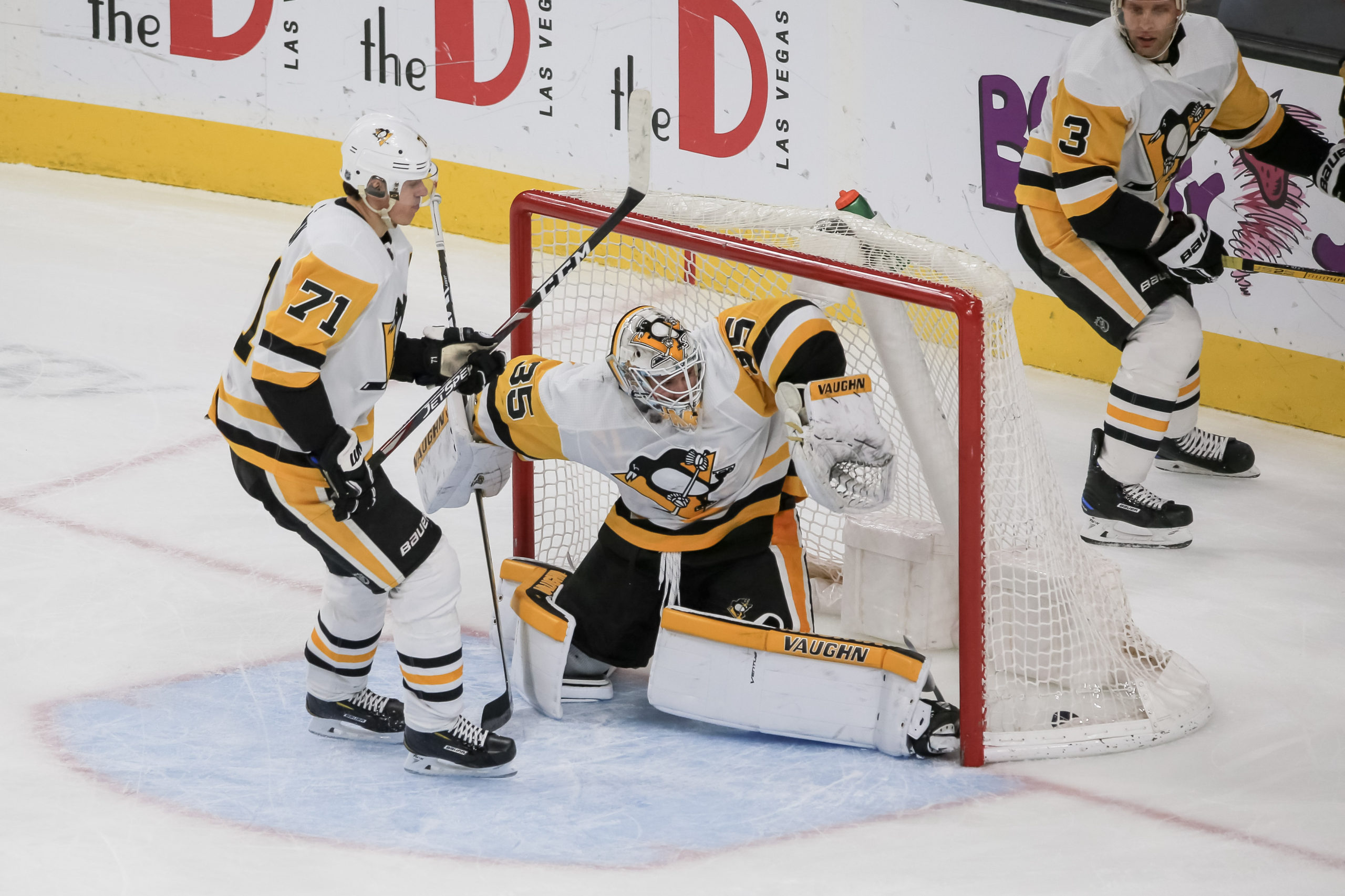 VGK goaltender Marc-Andre Fleury fell behind his old Penguins mates, 2-0, after one period as Evgeni Malkin and Patric Hornovist registered tallies for Pittsburgh.