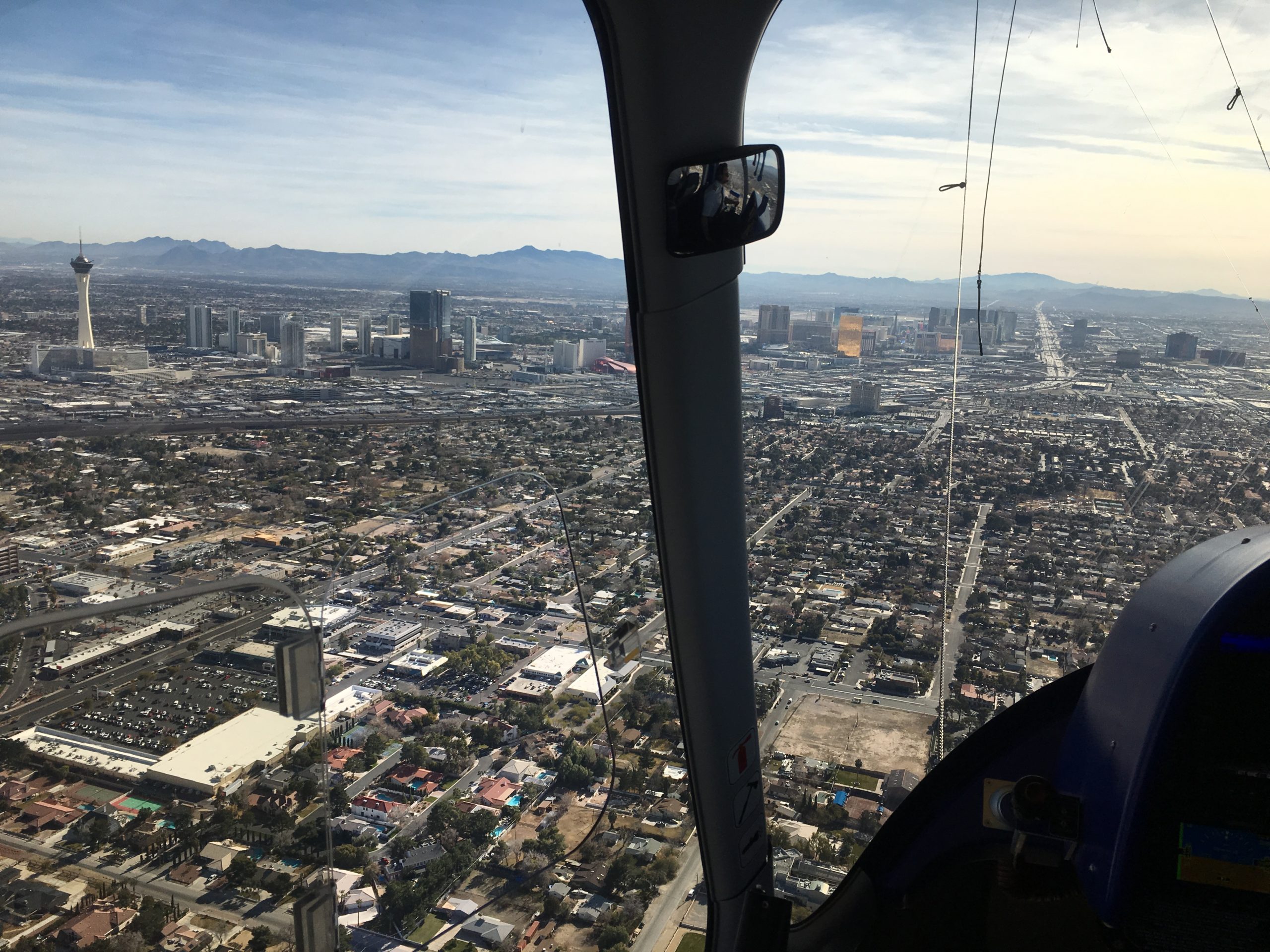 The traffic around Las Vegas Convention Center is a mess with the mega CES show in Las Vegas, but 1,000 feet above the west side of Interstate 16 with a view of the Strip and the Raiders’ Allegiant Stadium under construction there’s no congestion at all.