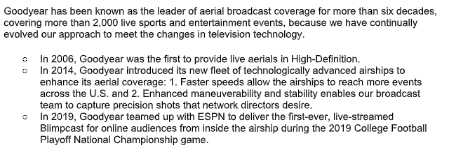 Dean is fresh off the Rose Parade and Rose Bowl assignment in Pasadena on Jan. 1 — just the latest in Goodyear’s 65-year history of being part of the TV broadcast coverage of everything from Super Bowls to NASCAR races. Here’s a nice summary.