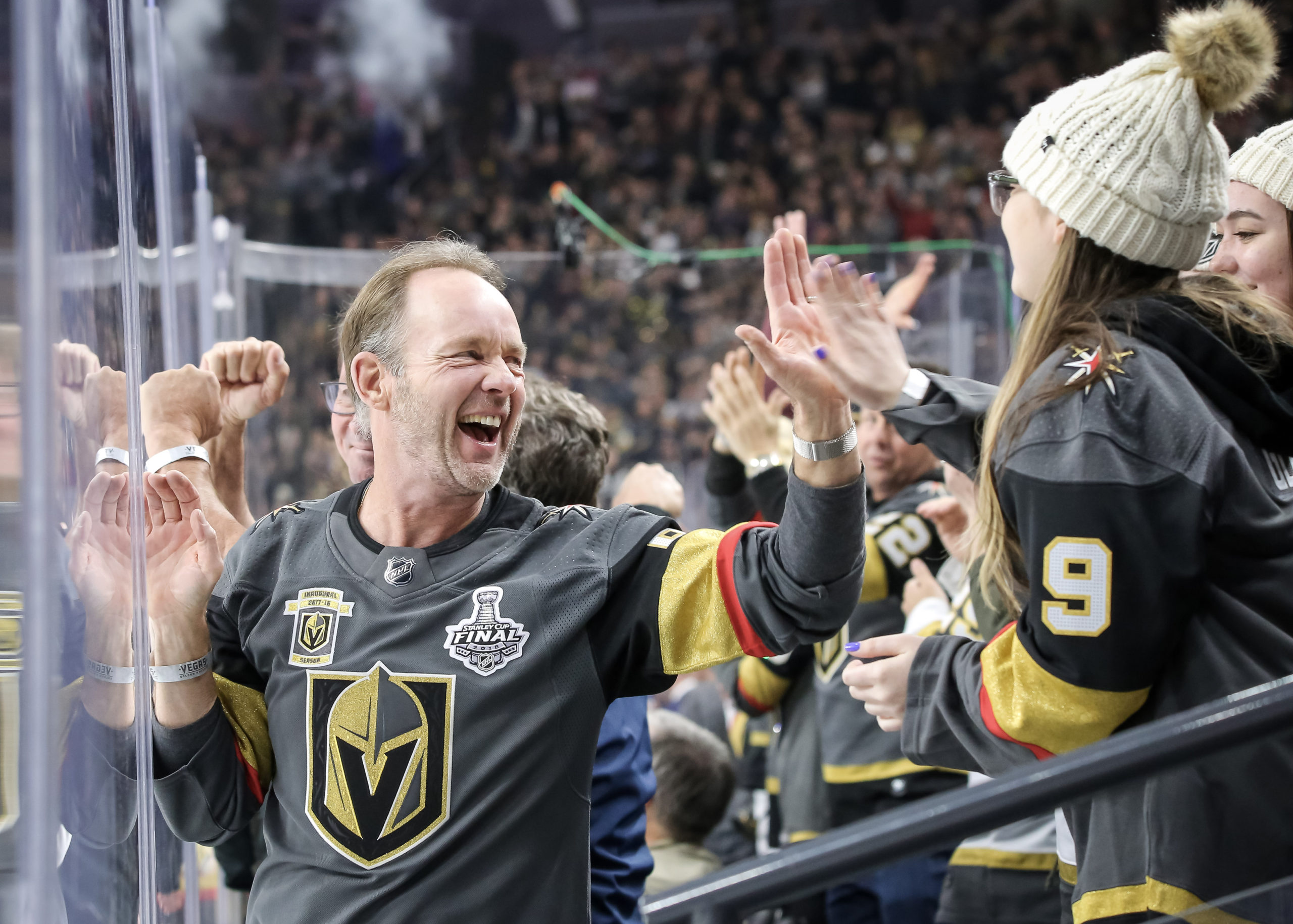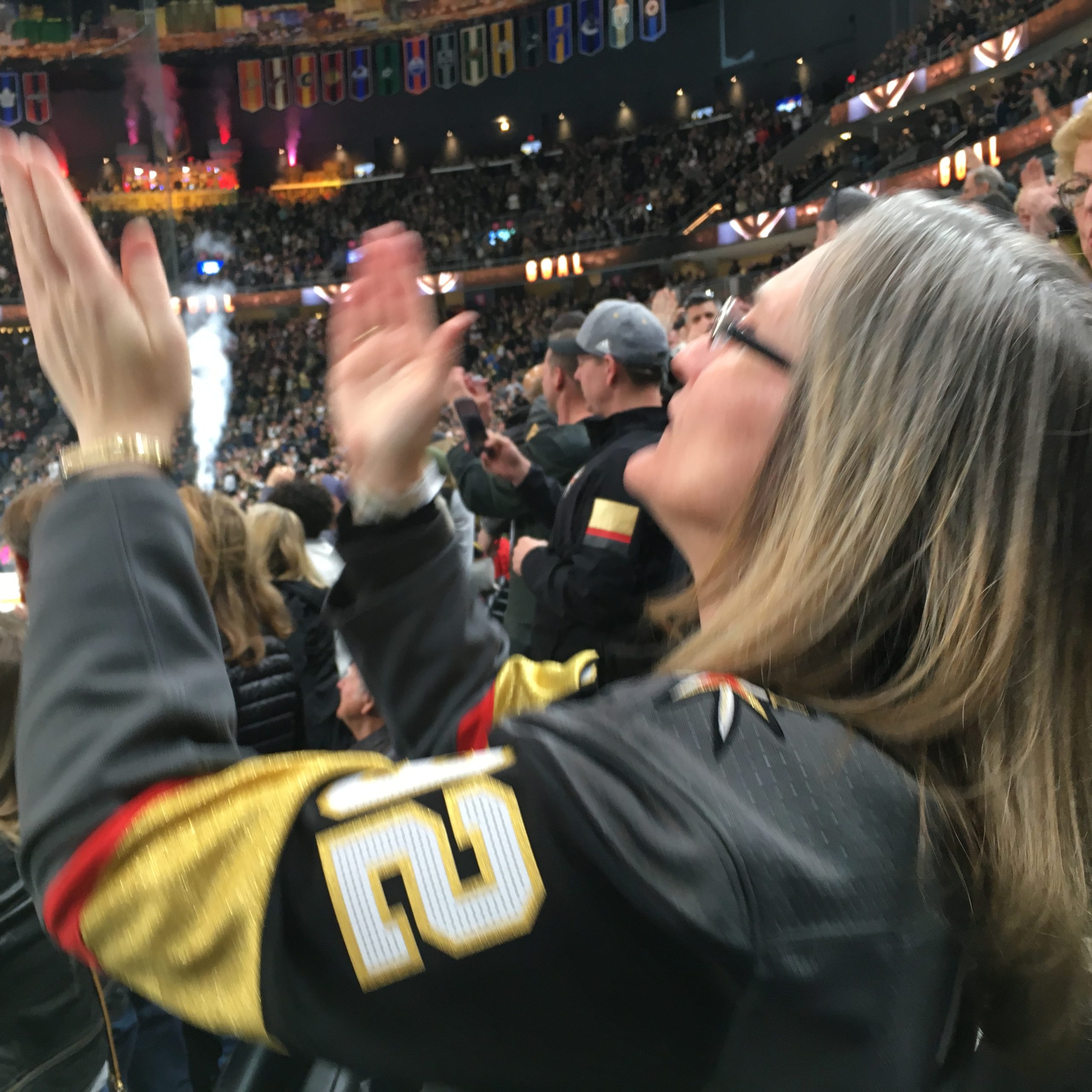 Fans celebrate a VGK goal Saturday night.