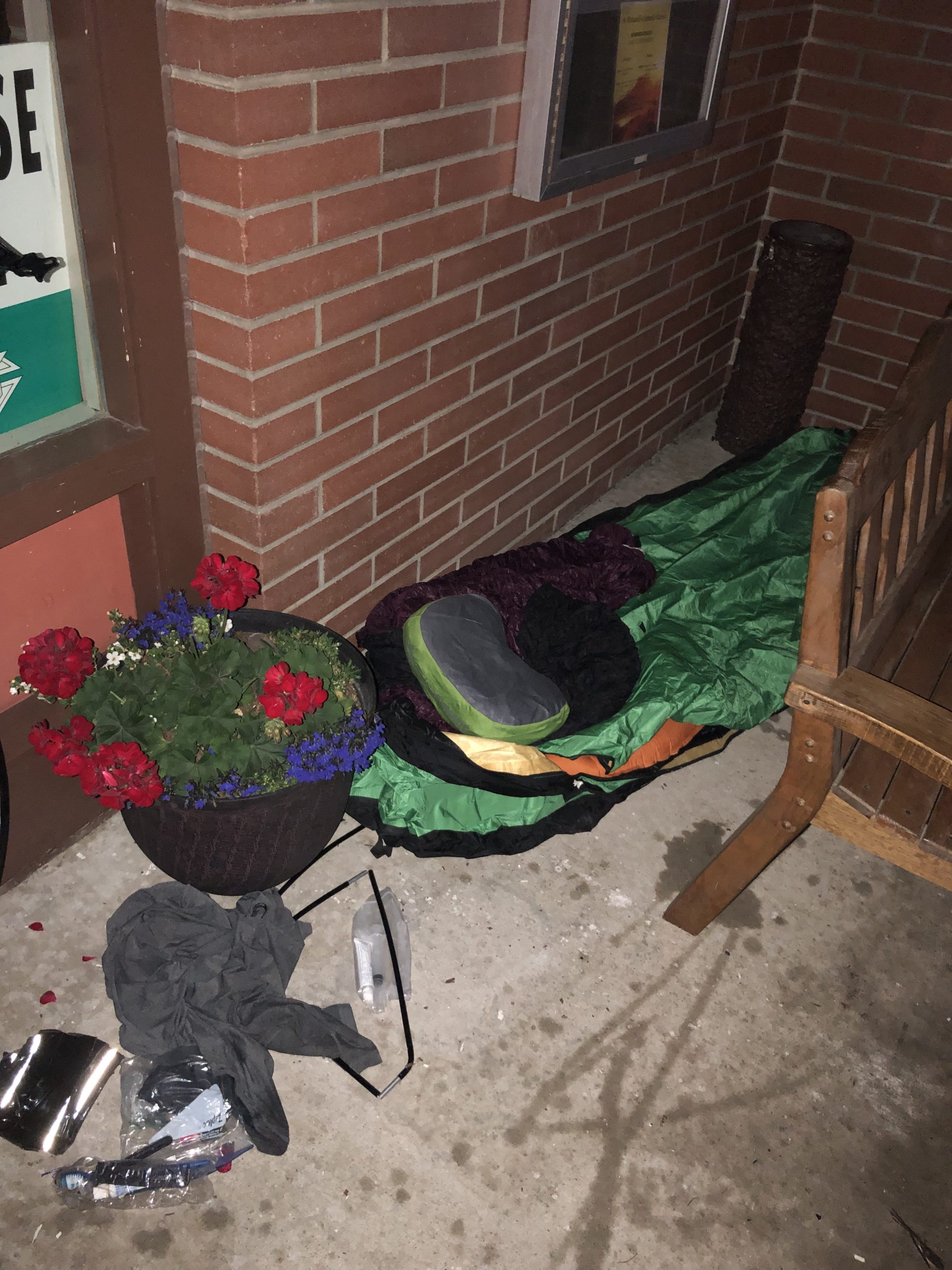 Fisher camped about half the time — “or whenever I started falling asleep on my bike in the night,” Fisher told me.”If I could find a hotel room and I was done riding that would do it. I stayed at one church on the sidewalk and in the rain.”