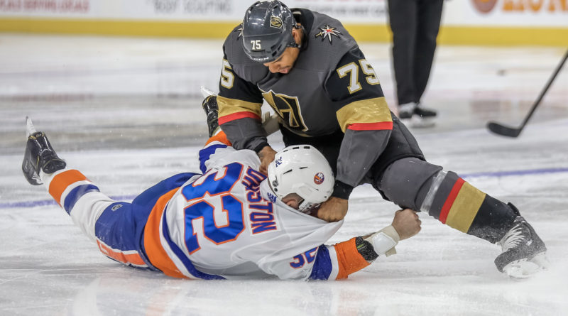 In the end, there were more fights (2) than goals (1). After heavyweight boxer Tyson Fury cranked the siren to get the game off and running, hard-hitting VGK forward Ryan Reaves and the Islanders’ Ross Johnston let the fists fly.