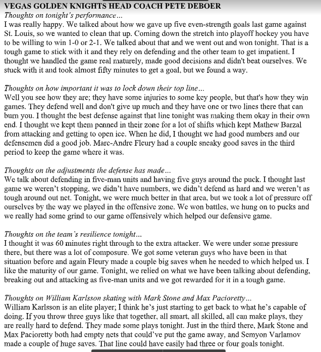 Here’s VGK coach Pete DeBoer after the game.
