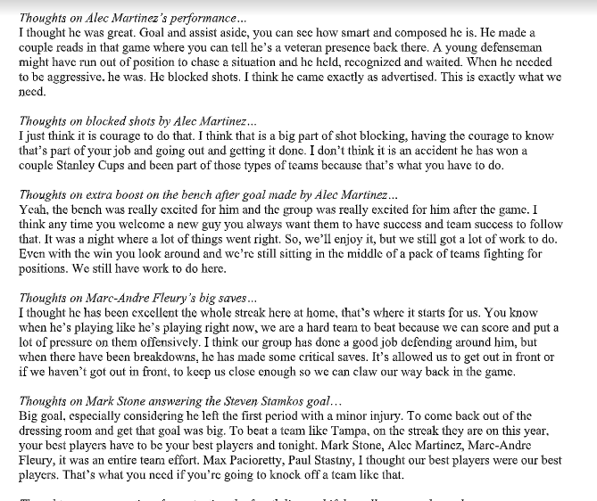 Here’s a sample of DeBoer after the VGK 5-3 win.