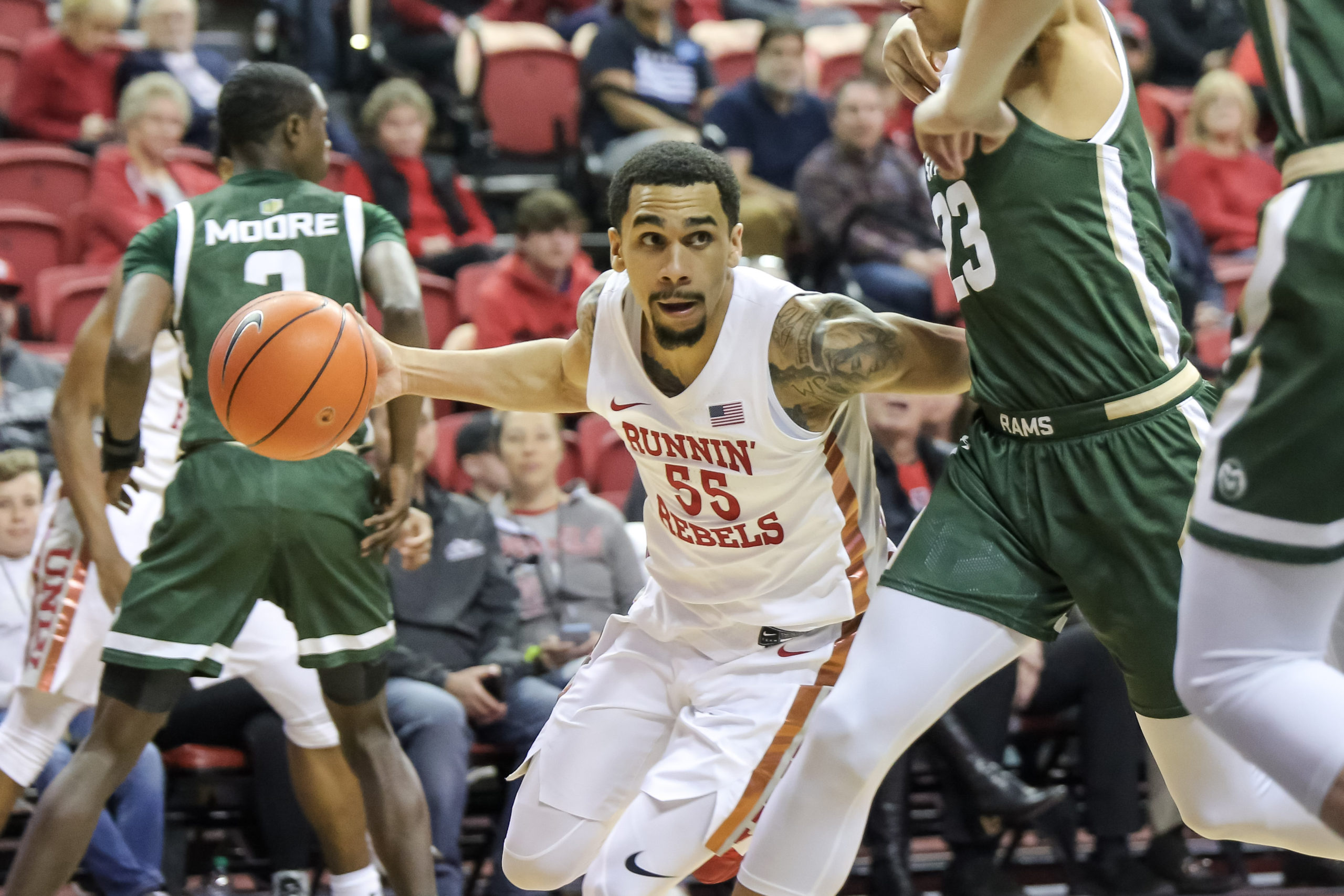 The Runnin’ Rebels trailed 29-24 at halftime, and the second half wasn’t any prettier. The final score was 67-61. The total easily came in under.