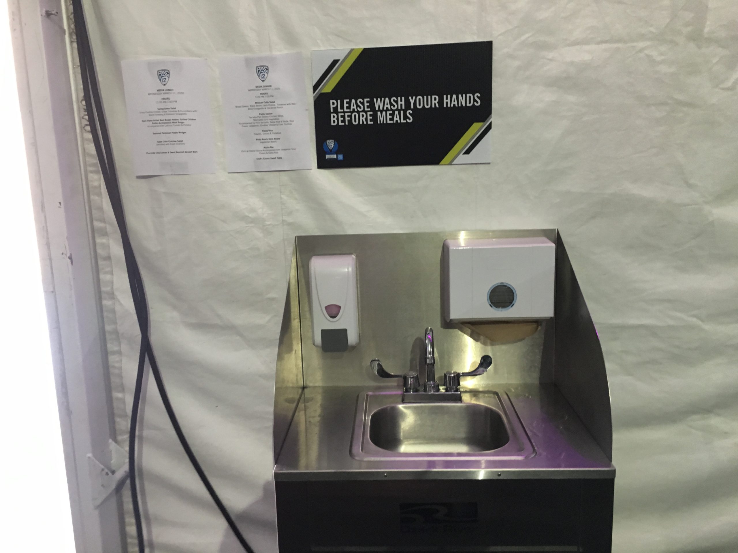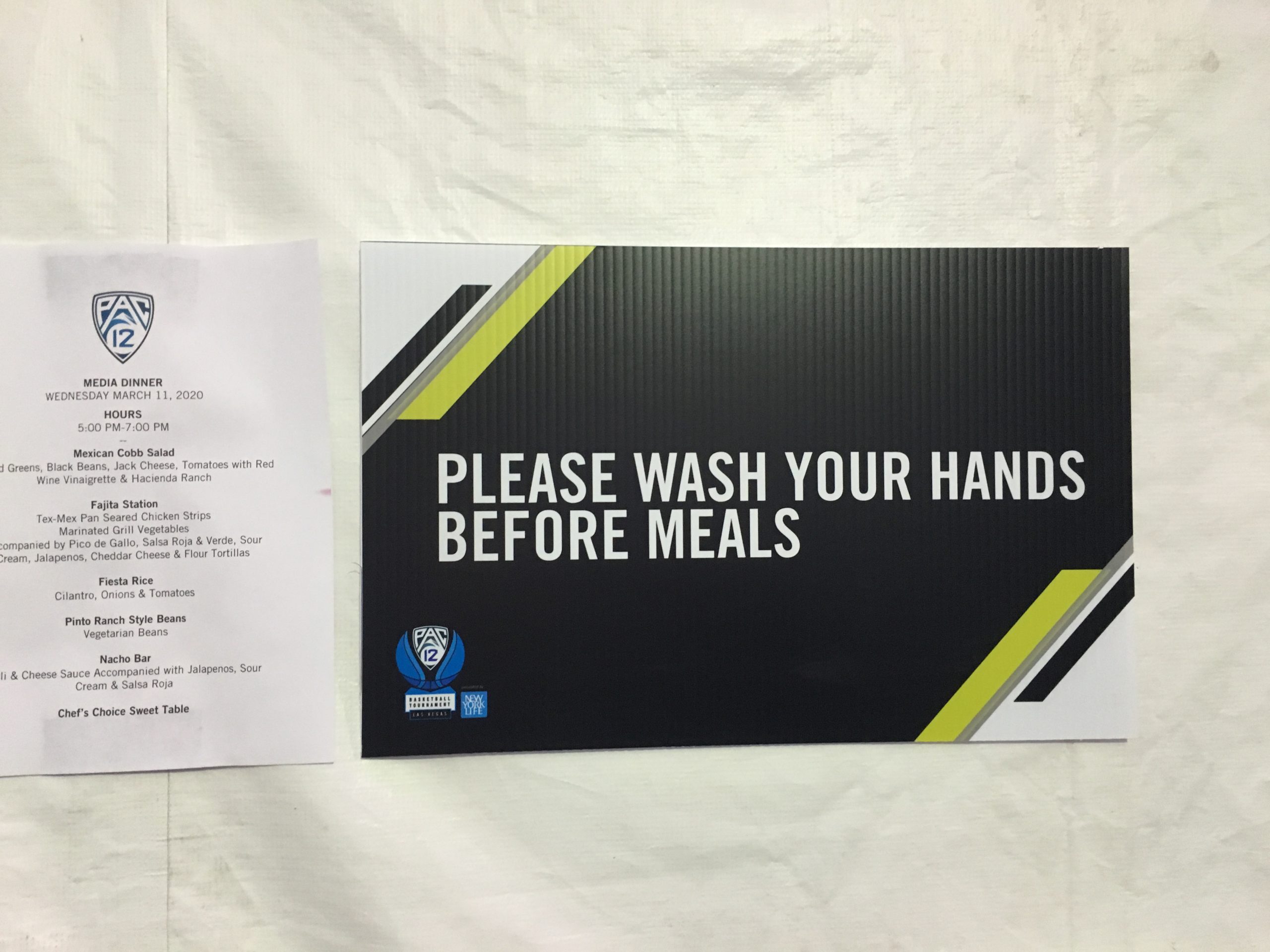 The Pac-12 men’s basketball tournament went ahead at T-Mobile Arena as planned Wednesday, though hand sanitizer stations and “please wash hand” signs are around the venue owned by MGM Resorts and Los Angeles-based AEG.