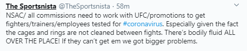 White said unless the federal government shuts down all activities and requires quarantines, he will try and find new locations for the UFC fight show events.