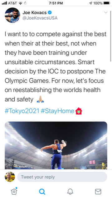 Finally, fans that have been waiting four to seven years to attend the Tokyo Olympics will now have to postpone their plans for another summer. Depending on how much they spent on tickets, hotel, and airfare, they could end up taking a loss on their investment depending on refund policies. However, many fans who may not have a financial investment in the Games have taken to social media to connect with athletes to keep encouraging them through these tough times and vice versa.