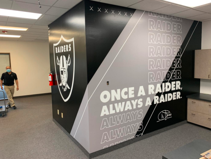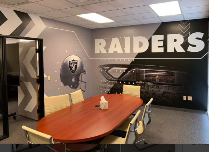 The Raiders headquarters will be in Henderson, where James Swanson, principal of Screaming Images, posted wall wraps in the Raiders’ offices Saturday. Here a couple of the LinkedIn photos.
