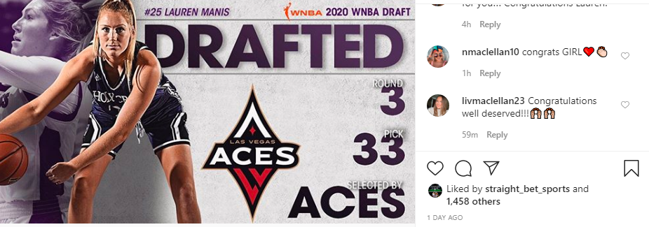 “I am so thankful and humbled to be selected by the Las Vegas Aces,” Manis said in a release from Holy Cross. “This is a dream come true, and I can’t wait to meet the rest of the Aces family. Thank you to the Holy Cross community for all the love and support during my four years.”