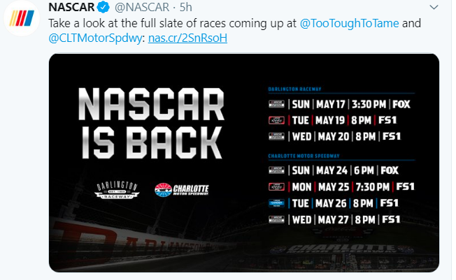 The Little League World Series might be out for 2020, but NASCAR is back.