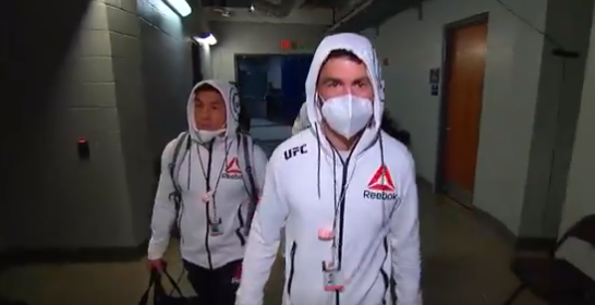 Outside the Octagon, many but not all personnel donned protective masks. Octagon announcer Bruce Buffer wore a mask cageside and removed it to read introductions and results while inside the cage.