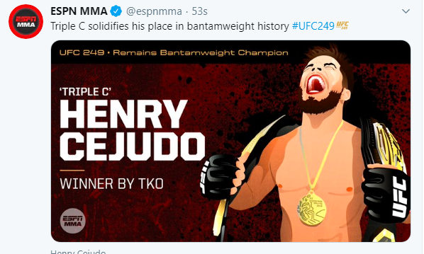 Henry Cejudo vs Dominick Cruz was another big headliner for UFC, with bantamweight champ Cejudo winning by TKO in the co-main event. He then announced he’s retiring.