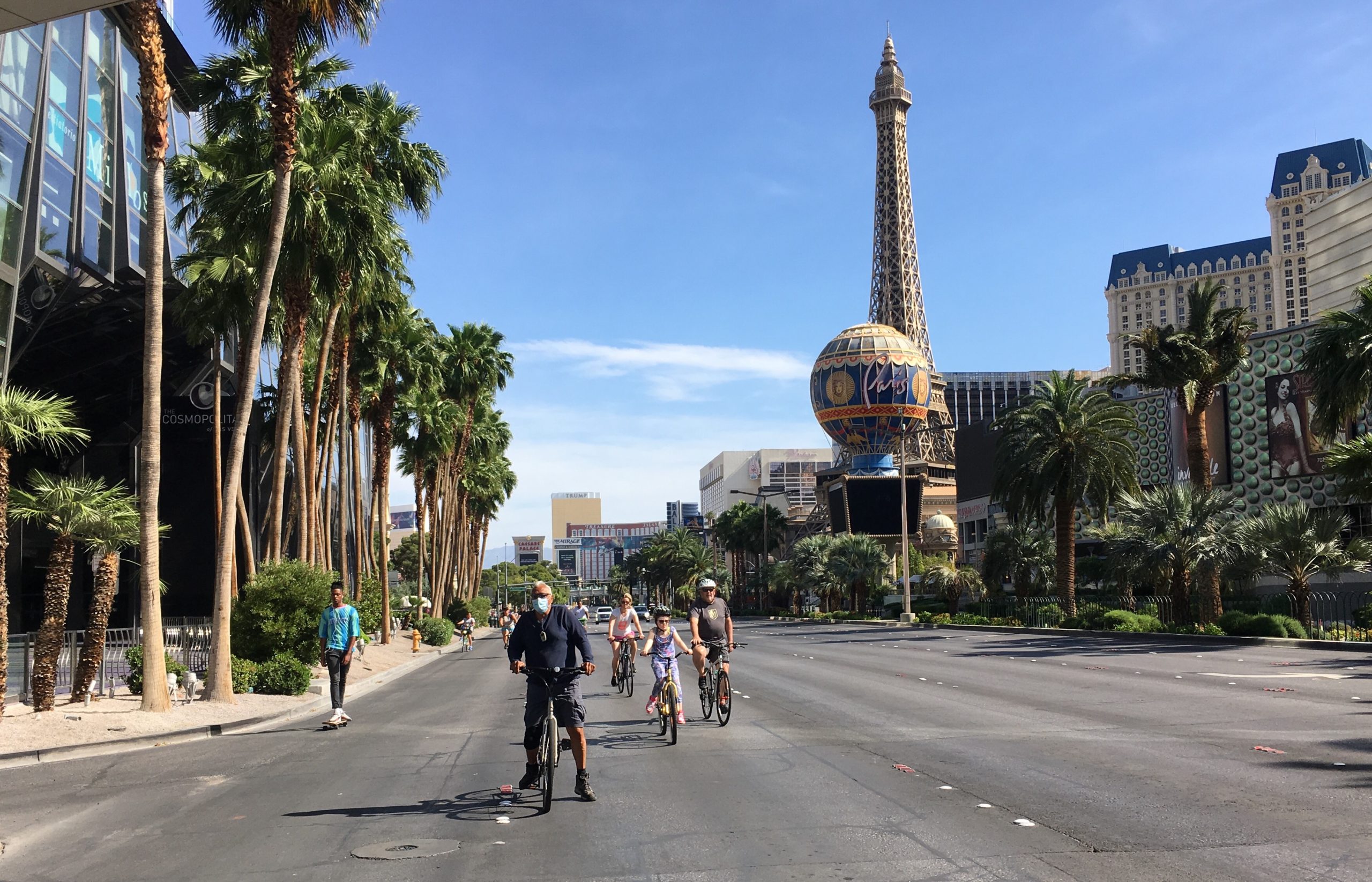 Like the fact that the world-famous Strip has turned into an unofficial “ciclovia” — a main boulevard in a town where bicyclists pedal their way down the road without cars around.