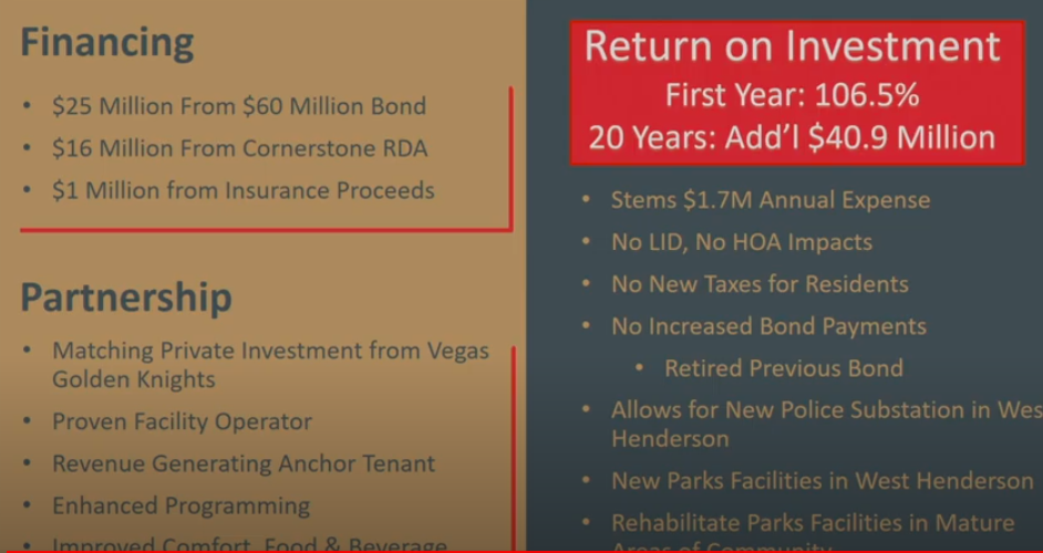 City of Henderson Chief Infrastructure Officer/Assistant City Manager Rob Herr gave a presentation painting an upbeat picture of the pavilion/event center/hockey arena project at Green Valley Ranch Parkway and Paseo Verde Parkway.