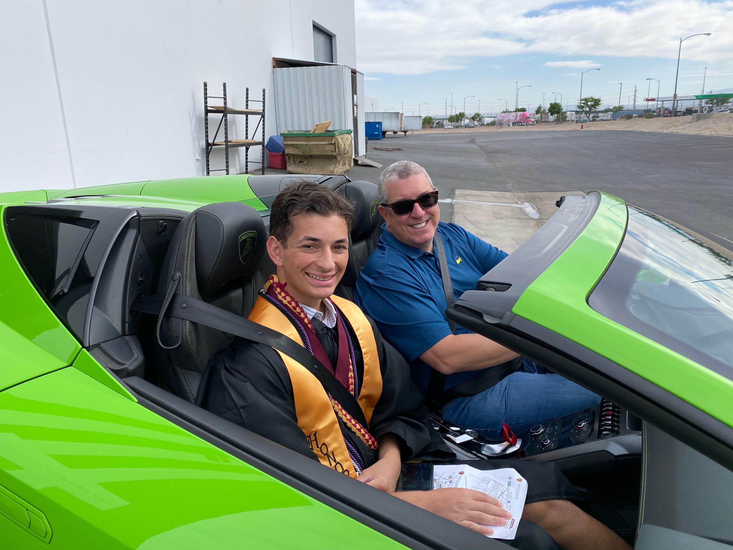 Frevola’s dad, Jim Frevola, picked up the hot ride through a friend at nearby Exotics Racing. The elder Frevola’s friend, David Perisset, lent the Frevola family the Lambo as a graduation gift to Jack.