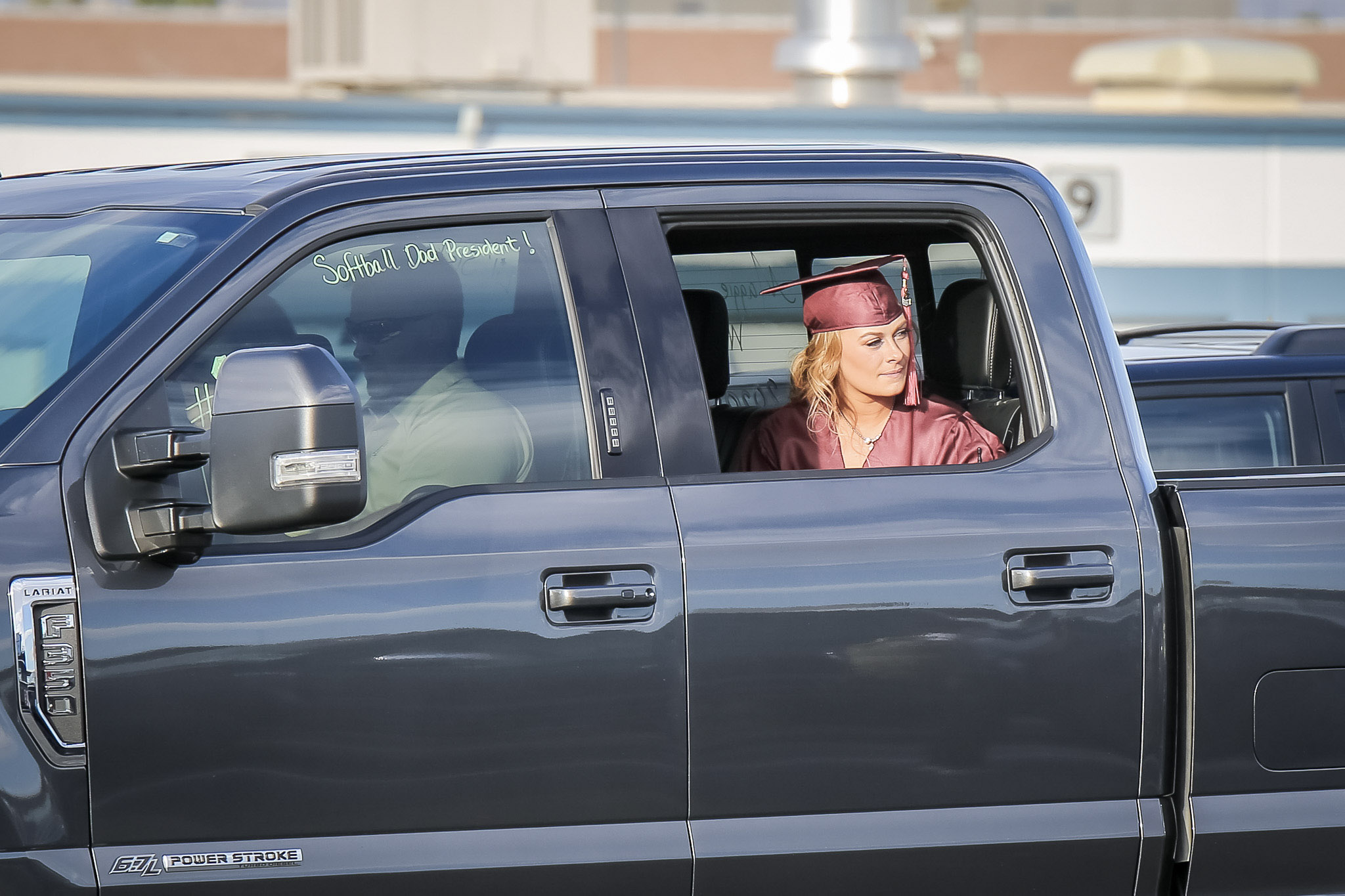 The 255 graduates in cars picked up their diplomas as the finish line and then enjoyed a victory lap around the 1.5-mile track. The students and their families were supposed to be able to hear the commencement address as well as remarks from the valedictorian on their car radios via the speedway’s low-power FM transmitter.