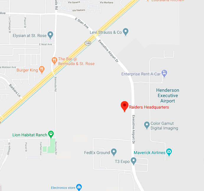 But the team will be spending most of its time in suburban Henderson 11 miles away from the 65,000-seat domed stadium at the Raiders’ spanking new training center and headquarters across the street from the Henderson Executive Airport, not too far from St. Rose Parkway.
