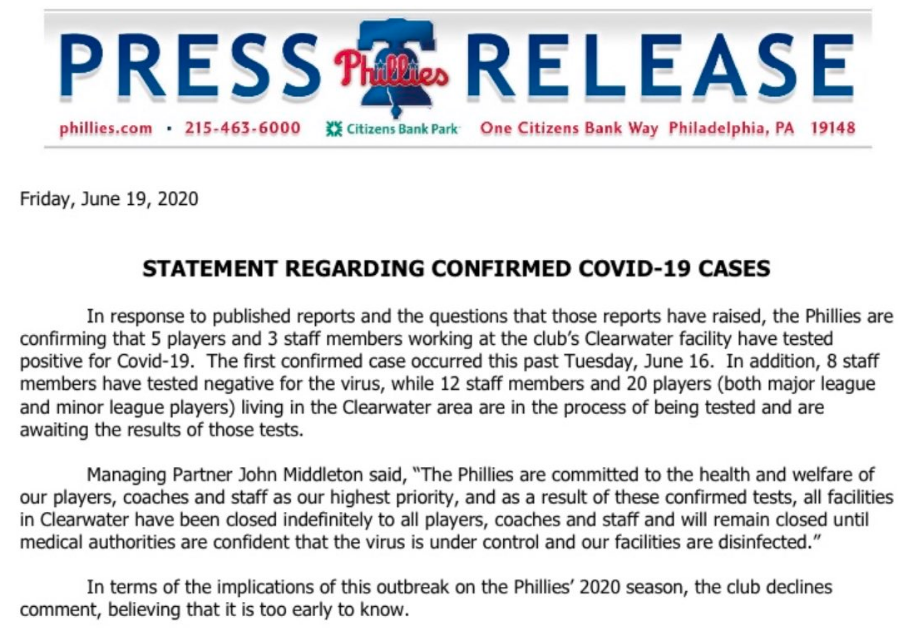 And the Phillies offered these words the same day that White discussed that he was expecting a second shutdown.