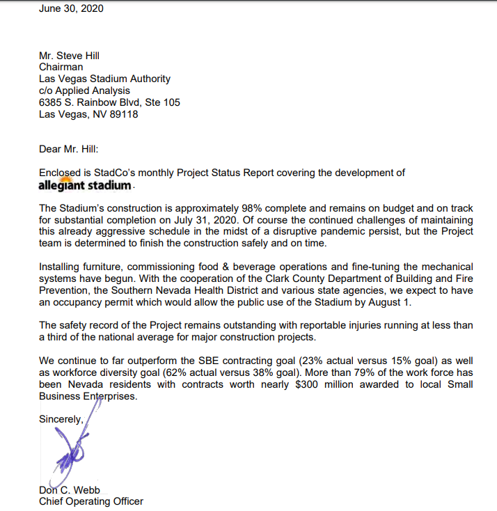 For those keeping track, the Raiders stadium budget is officially at $1.976 billion after the spending plan was increased by $3.3 million during the May 2020 reporting period.