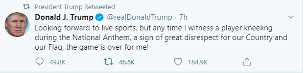 President Donald Trump and his tweets about players kneeling to express their views on racial inequality issues were back in the news again when the commander-in-chief tweeted this item:
