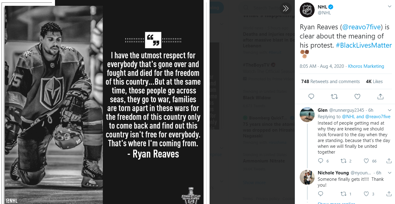 I ultimately hope that the players who now have the attention of the NHL and its fans take this opportunity to follow up and make a meaningful and legitimate community impact to help create positive change.